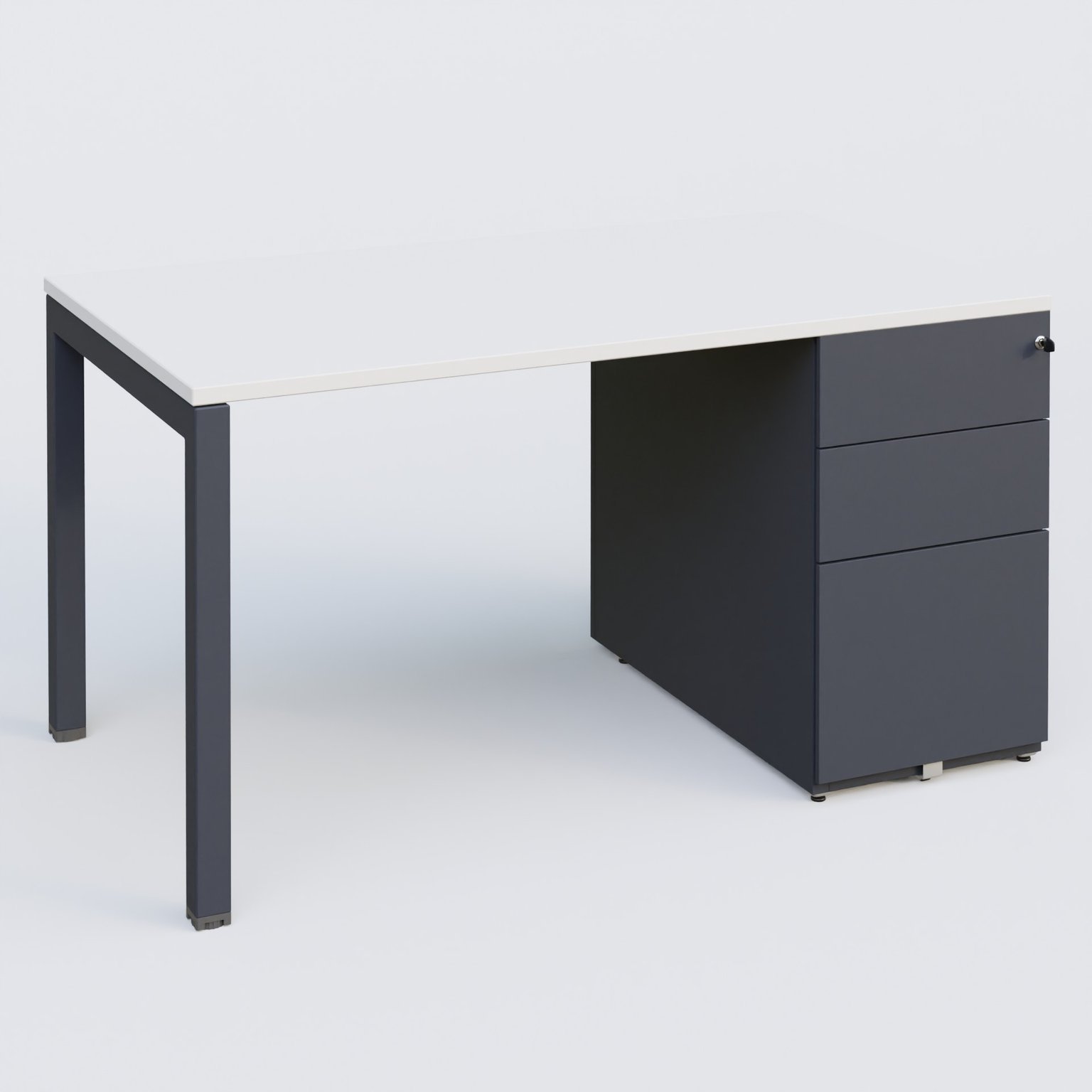 K3 Plateau droit 140x80 avec caisson métalique sous le plateau. Plateau Blanc et pietement Anthracite