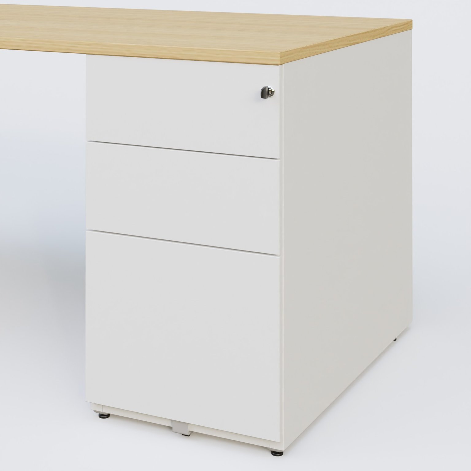 K3 Plateau droit 140x80 avec caisson métalique sous le plateau. Plateau Chêne clair et pietement Blanc