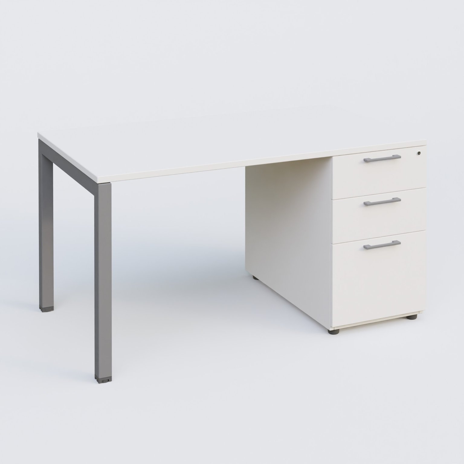 K3 Plateau droit 140x80 avec caisson porteur mélamine. Plateau ,caisson Blanc et pietement Aluminium