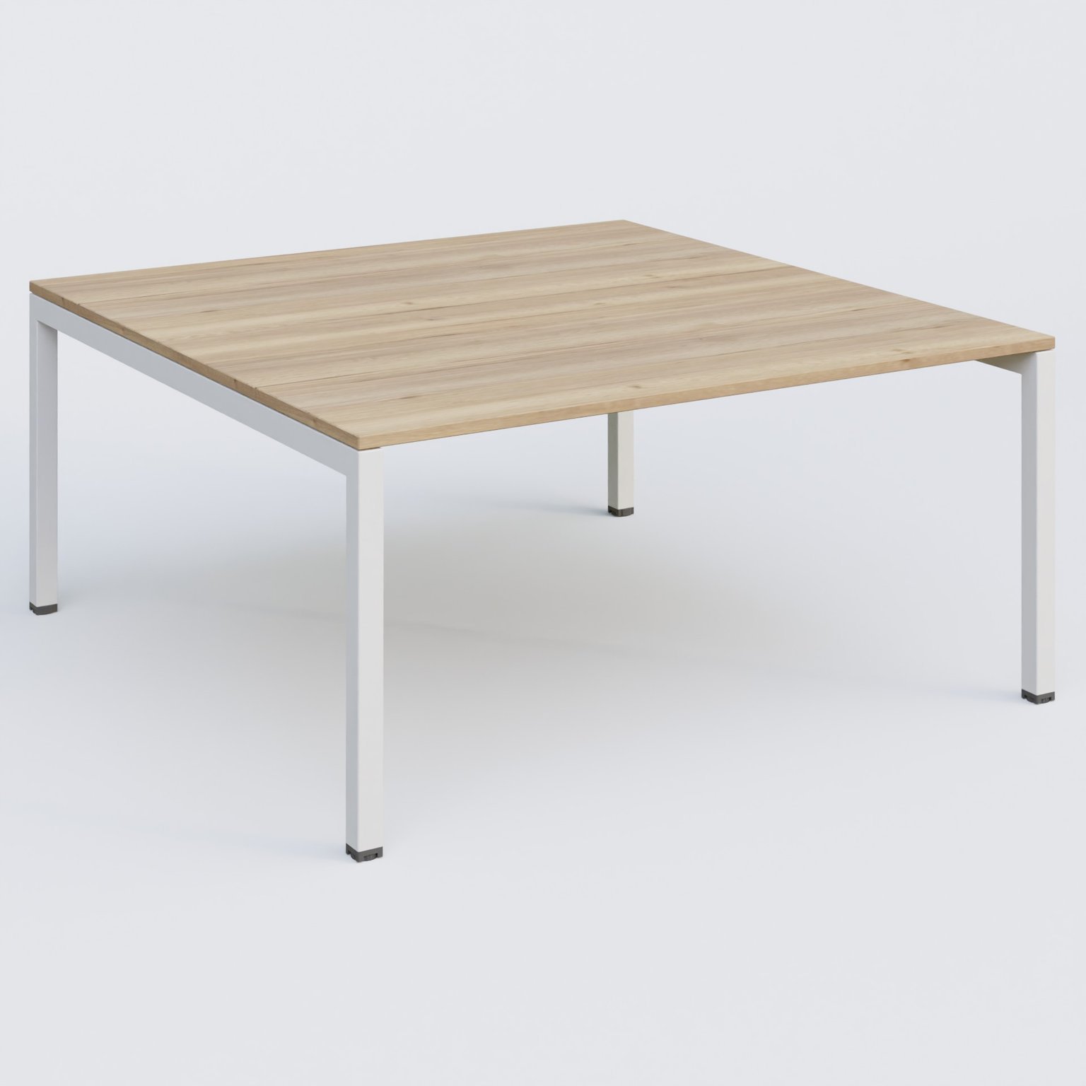 K3 Plateau droit 160x165 pieds fixe. Plateau Chêne naturel et pietement Blanc.
