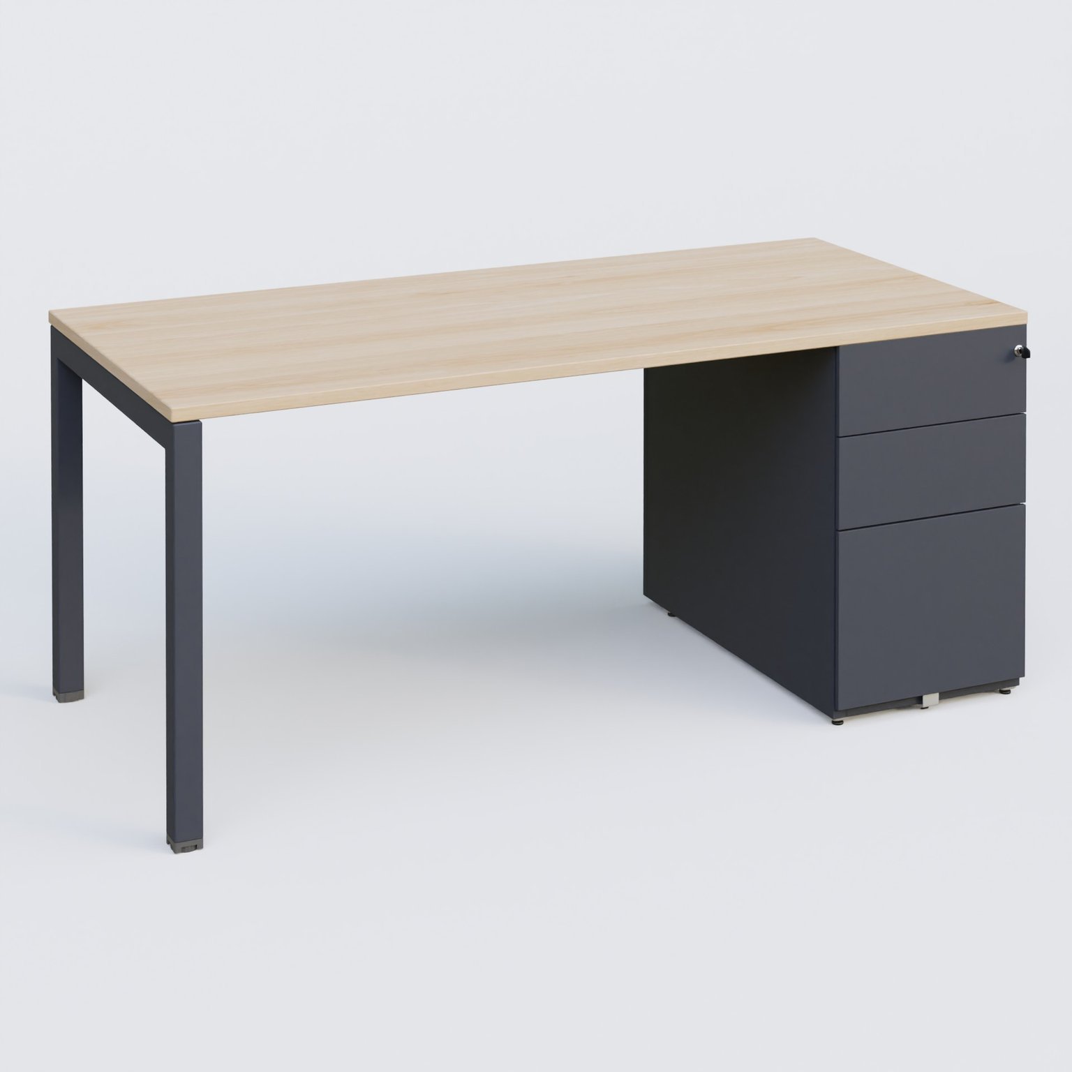 K3 Plateau droit 160x80 avec caisson métalique sous le plateau. Plateau Hêtre et pietement Anthracite