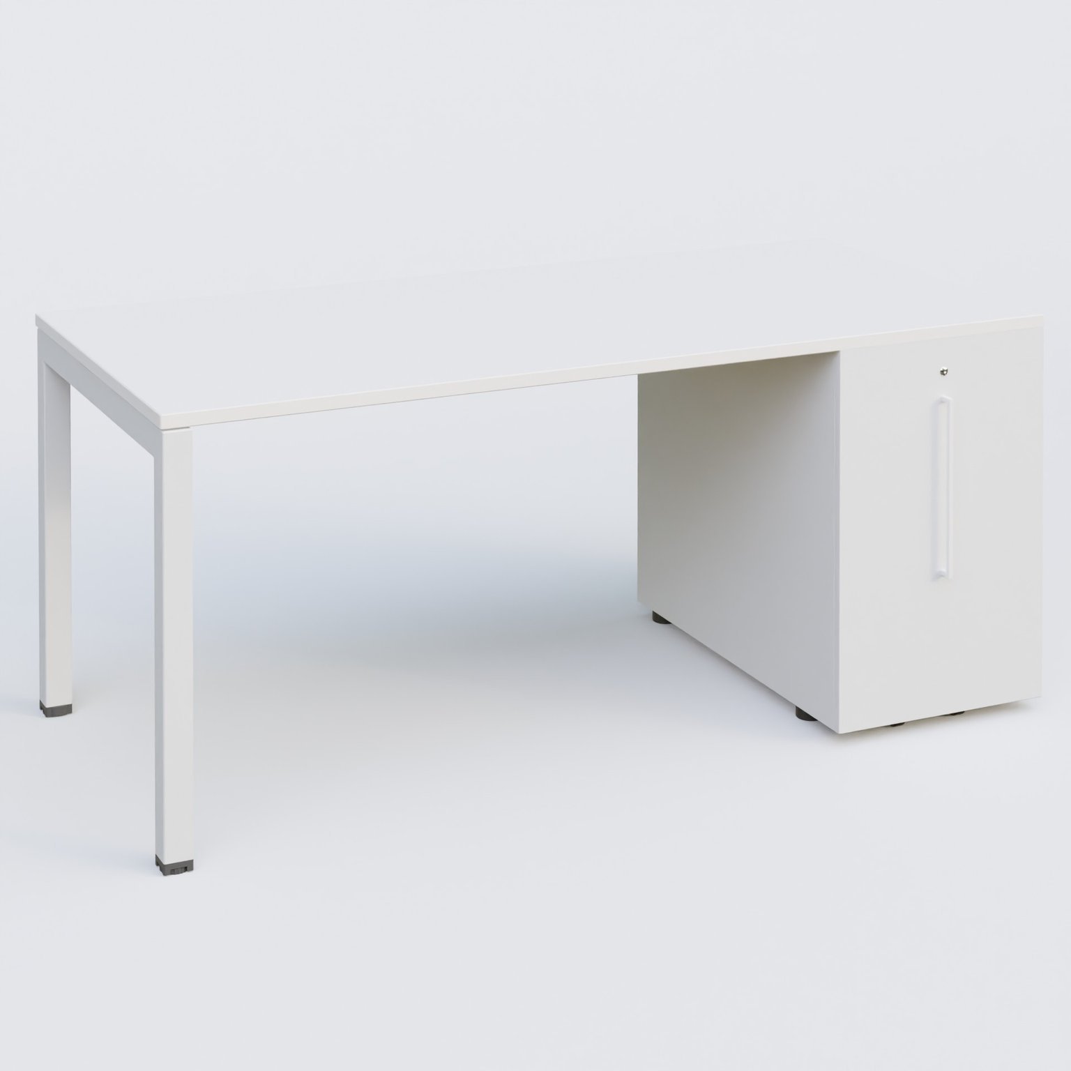 K3 Plateau droit 160x80 avec tour de rangement sous le plateau à droite. Plateau Blanc et pietement Blanc