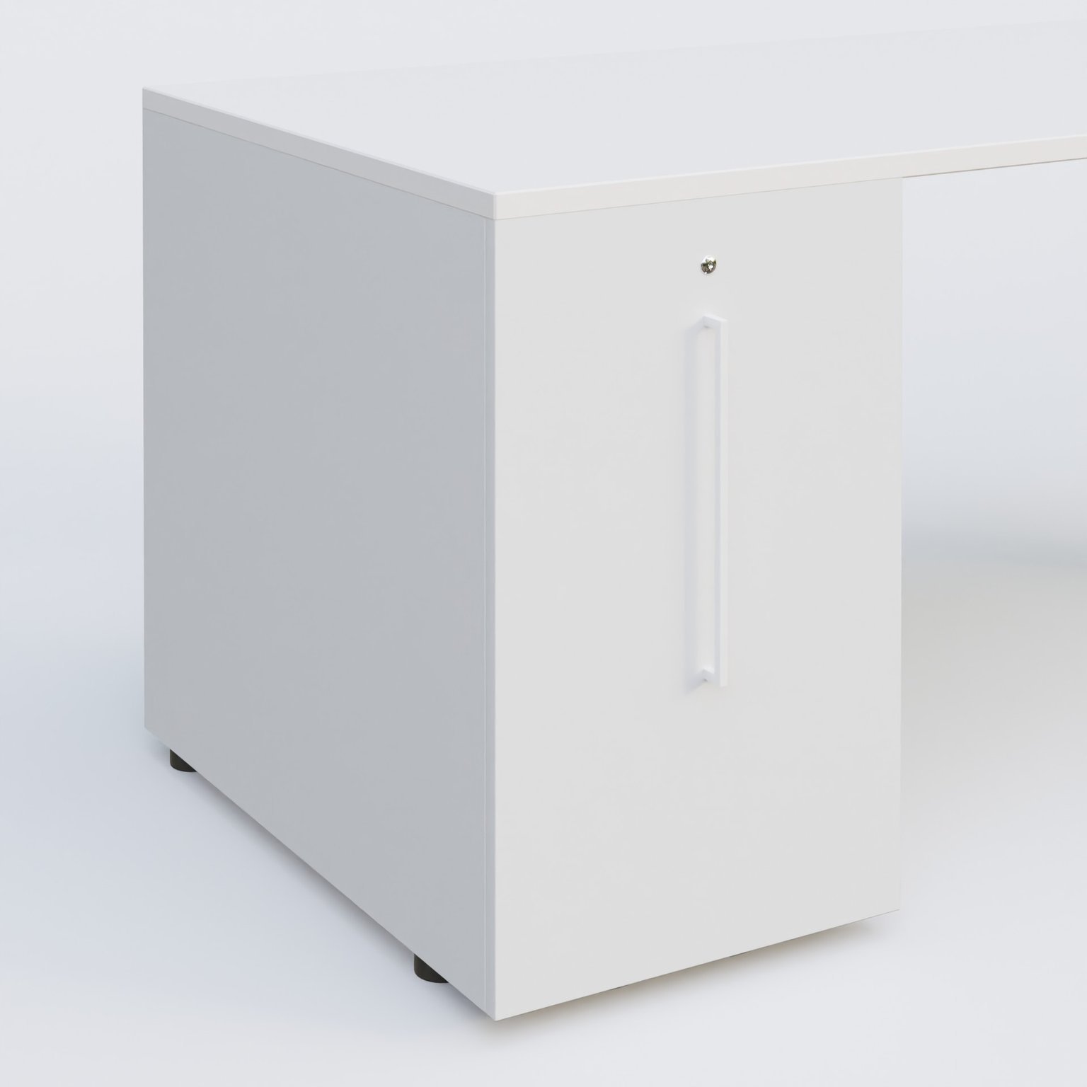 K3 Plateau droit 160x80 avec tour de rangement sous le plateau à gauche. Plateau Blanc et pietement Blanc