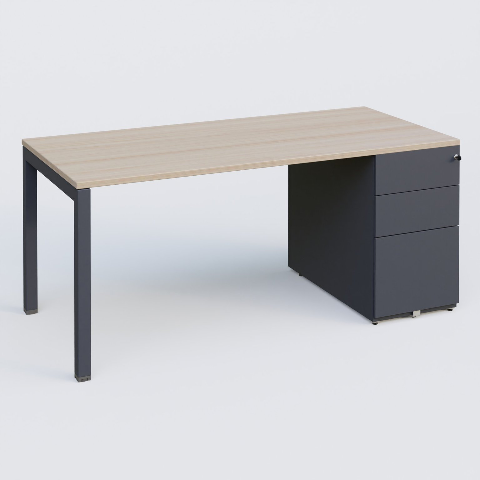 K3 Plateau droit 180x80 avec caisson métalique sous le plateau. Plateau Acacia et pietement Anthracite