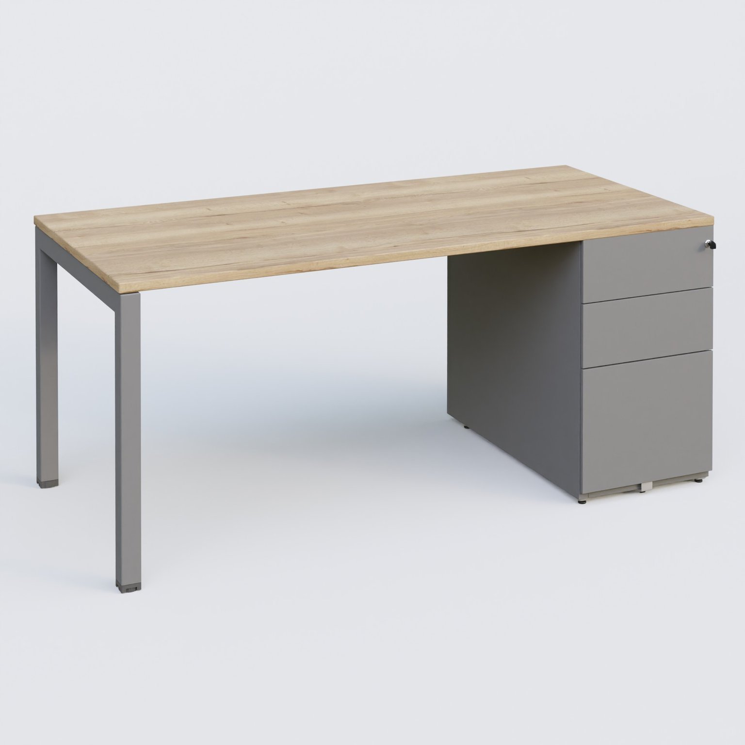 K3 Plateau droit 180x80 avec caisson métalique sous le plateau. Plateau Chêne naturel et pietement Aluminium