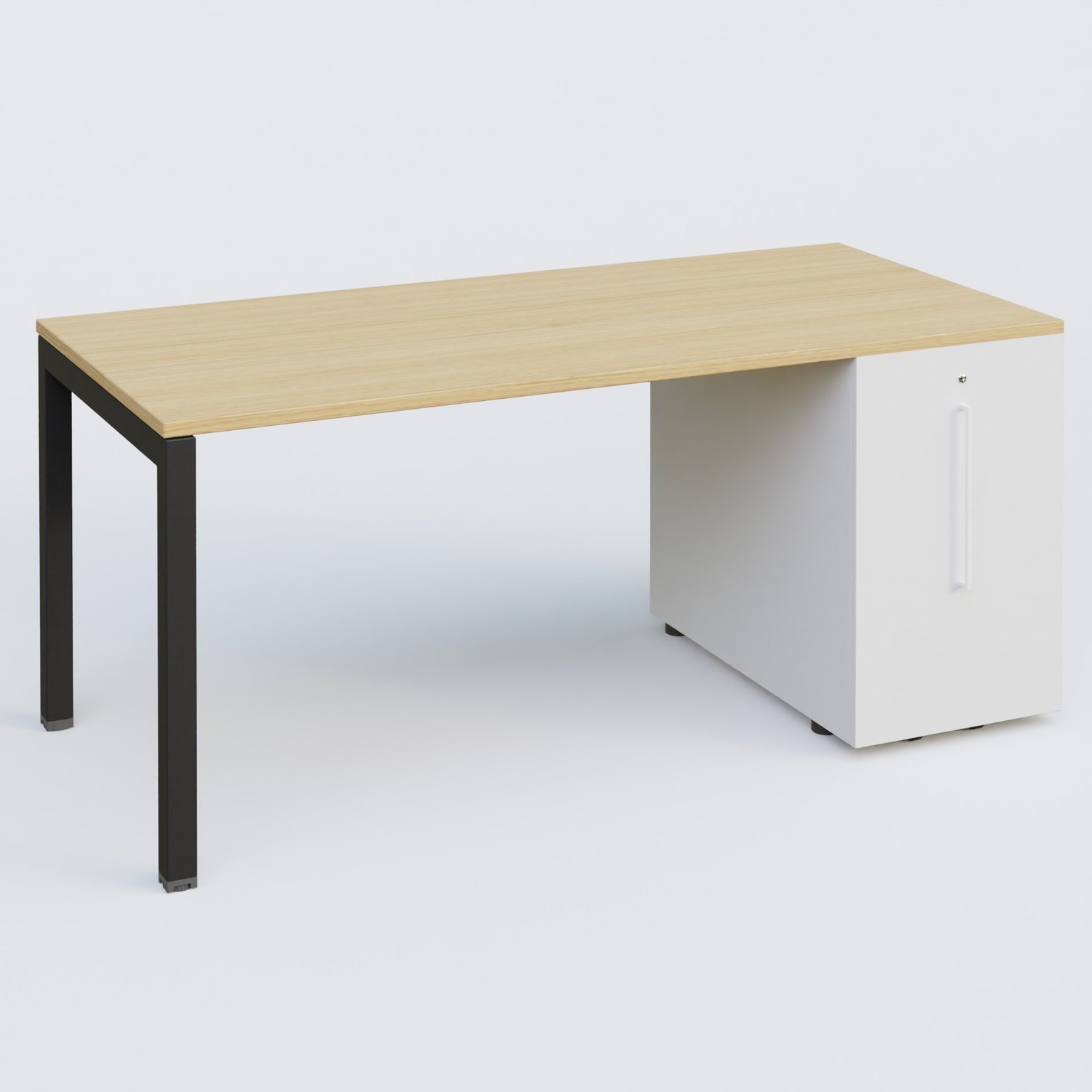 K3 Plateau droit 180x80 avec tour de rangement sous le plateau à droite. Plateau Chêne clair et pietement Noir Mat