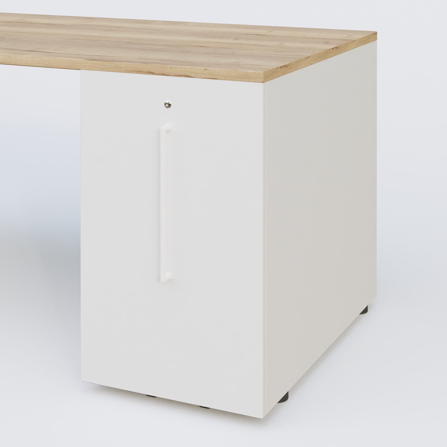 K3 Plateau droit 180x80 avec tour de rangement sous le plateau à droite. Plateau Chêne naturel et pietement Aluminium