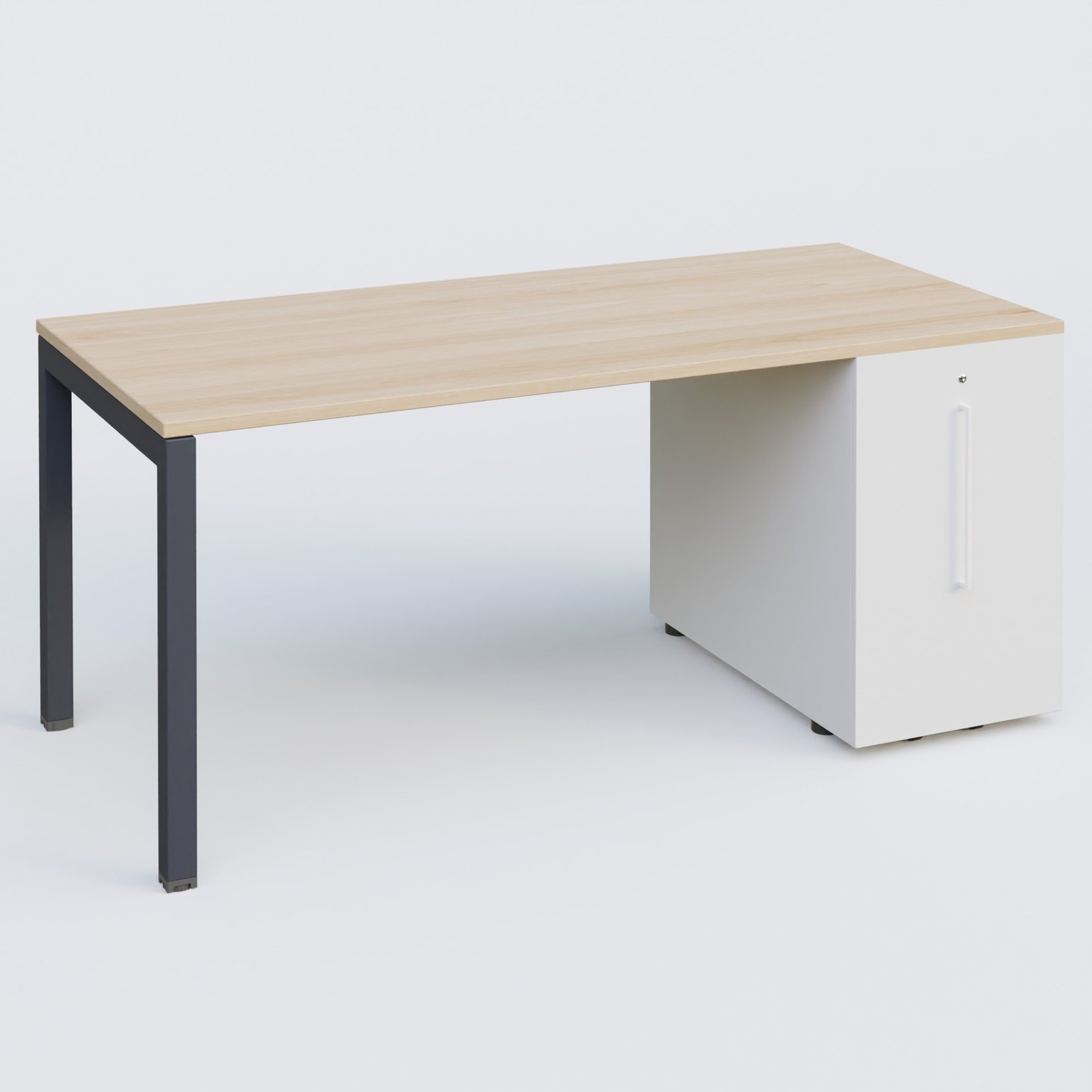 K3 Plateau droit 180x80 avec tour de rangement sous le plateau à droite. Plateau Hêtre et pietement Anthracite