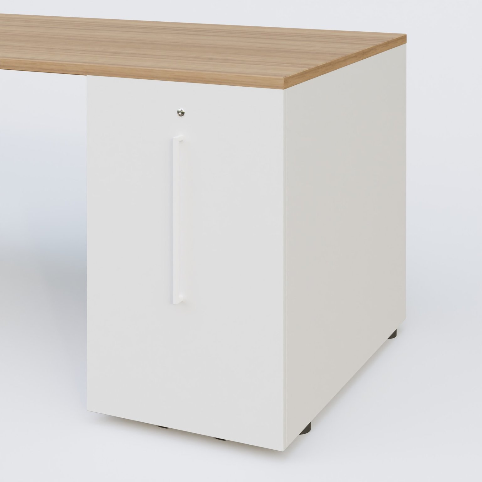 K3 Plateau droit 180x80 avec tour de rangement sous le plateau à droite. Plateau Chêne naturel et pietement Blanc blancBl cheneNaturelMh84