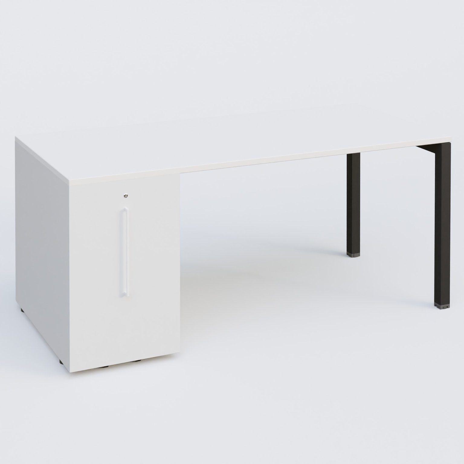 K3 Plateau droit 180x80 avec tour de rangement sous le plateau à gauche. Plateau Blanc et pietement Noir Mat