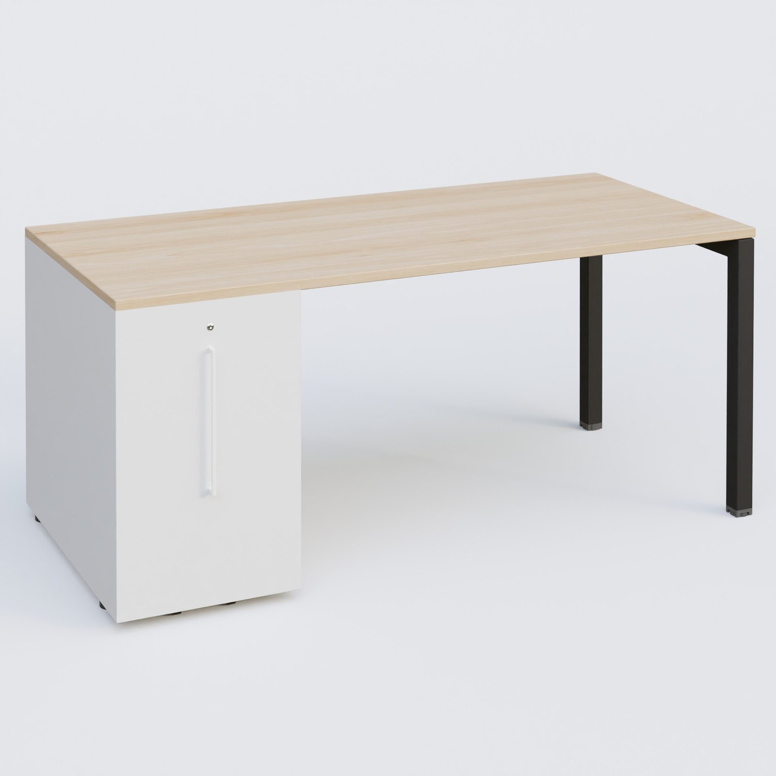K3 Plateau droit 180x80 avec tour de rangement sous le plateau à gauche. Plateau Chêne clair et pietement Noir Mat noirGraineMatNg cheneCe