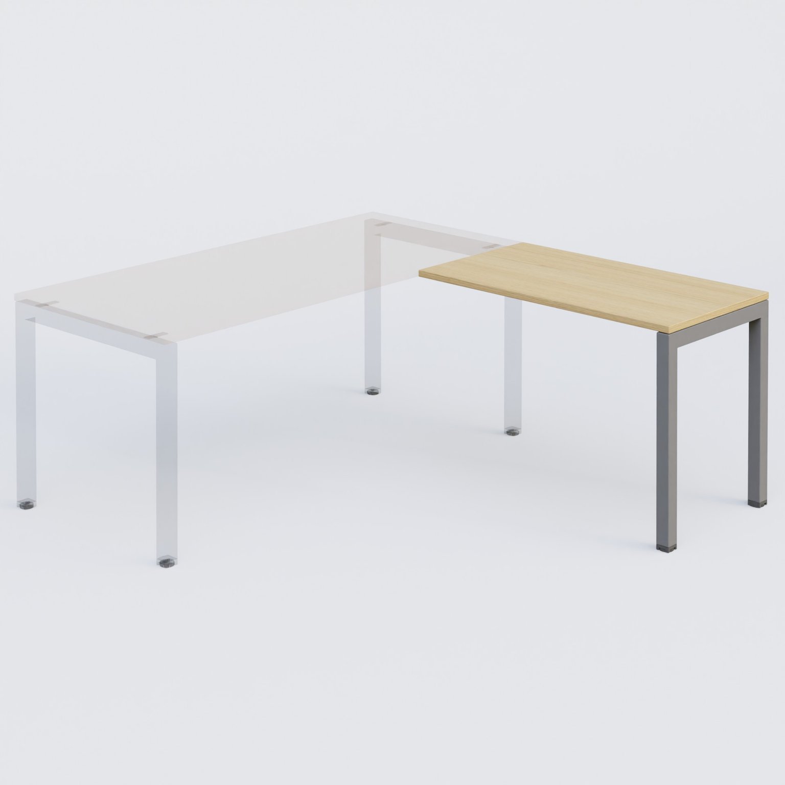 K3- Retour direct 100x60 sur pied- -Finitions : PLATEAUX: CHENE (CE) / PIETEMENTS: ALUMINIUM (AL ) /