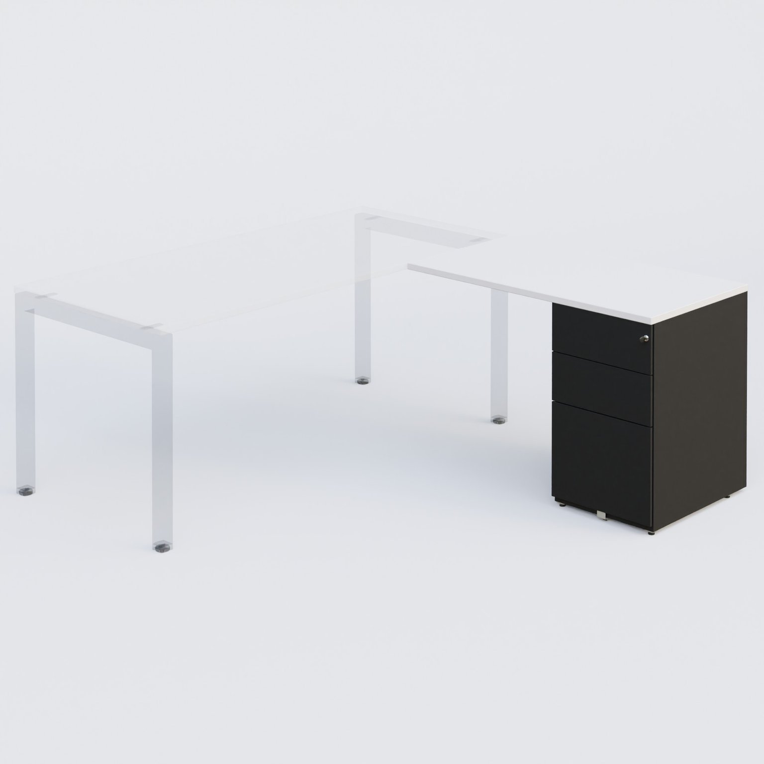 K3 retour direct 120x60cm sur caisson métal HB P.60cm 3 tiroirs. Plateau Blanc et caisson Noir Mat