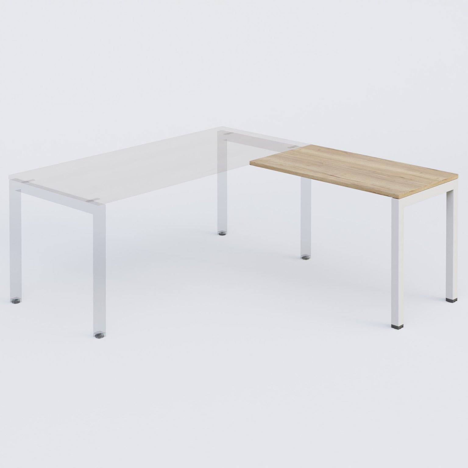K3 retour direct 120x60cm sur pieds P.60cm. Plateau Chêne naturel et pietement Blanc