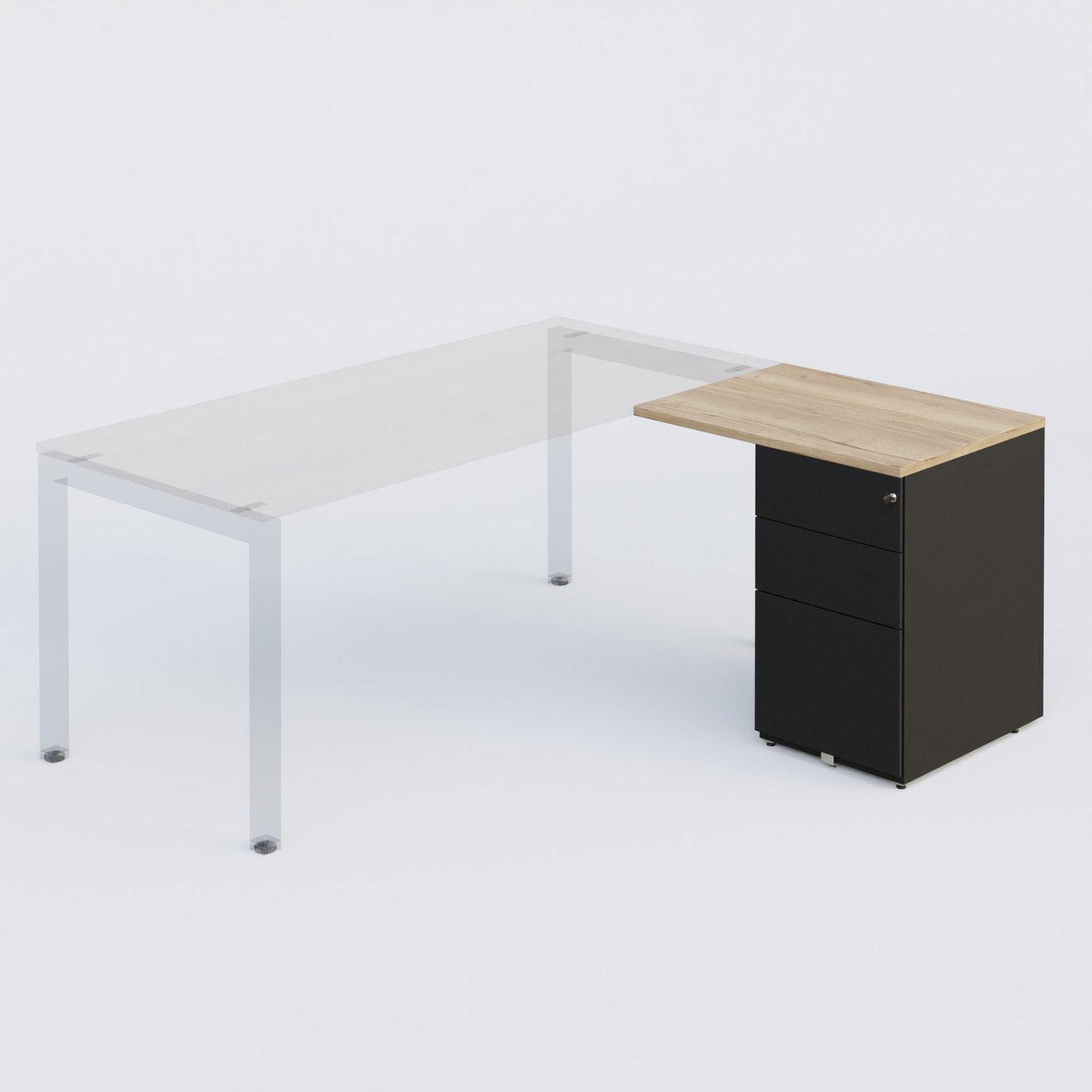 K3 retour direct 80x60cm sur caisson métal HB P.60cm 3 tiroirs. Plateau Chêne naturel et caisson Noir Mat