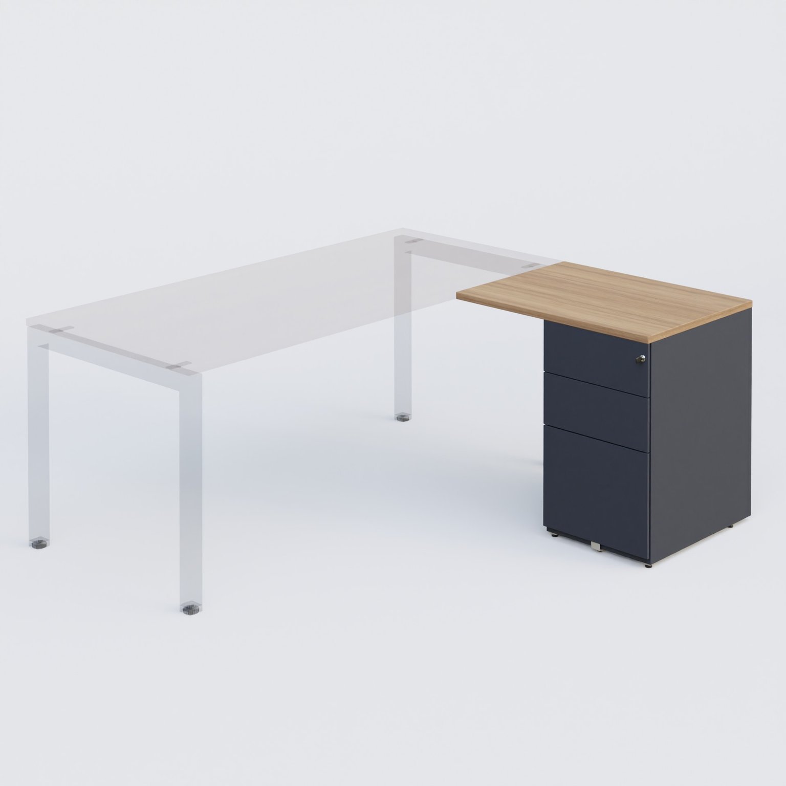 K3 retour direct 80x60cm sur caisson métal HB P.60cm 3 tiroirs. Plateau Noyer et caisson Anthracite