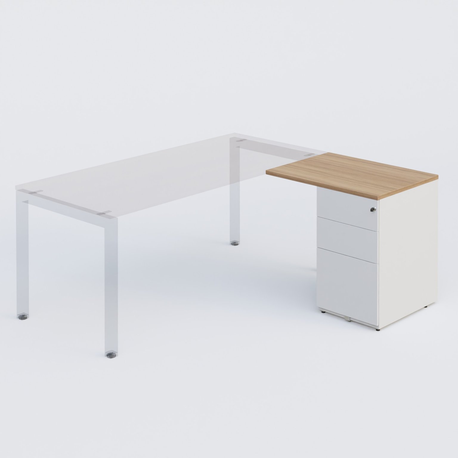 K3 retour direct 80x60cm sur caisson métal HB P.60cm 3 tiroirs. Plateau Noyer et caisson Blanc