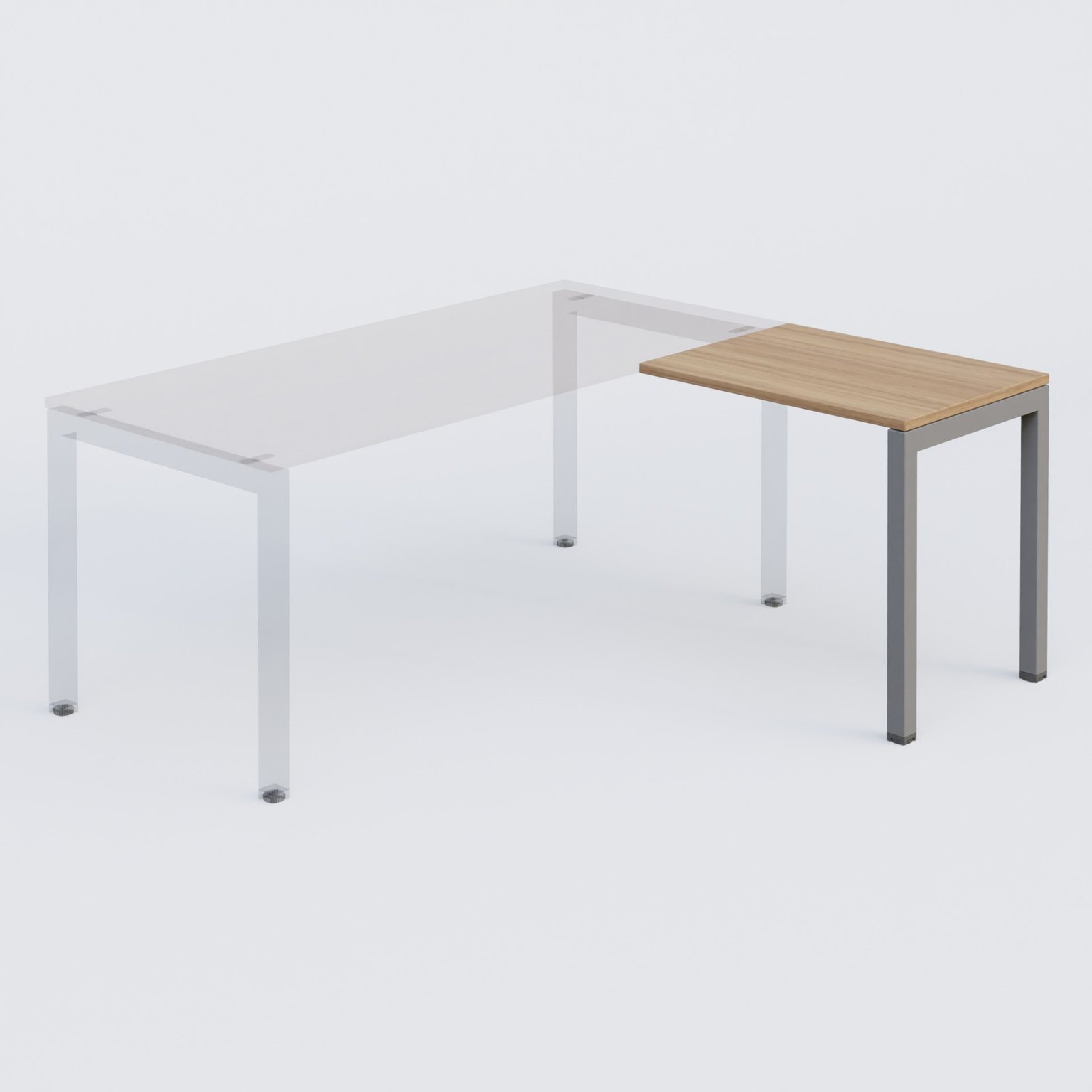 K3 retour direct 80x60cm sur pieds P.60cm. Plateau Noyer et pietement Aluminium