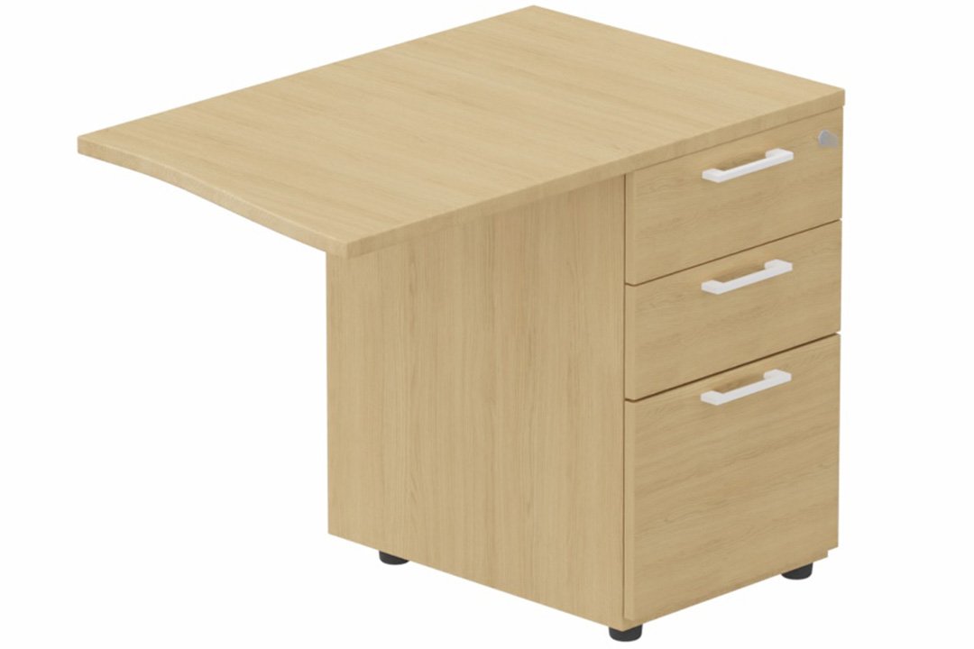 K3- Retour direct vague 90x60 sur caisson HB bois 3 tiroirs à droite - Finitions- Plateau et top caisson : Chêne (CE) / Piétements et caisson :Blanc (BL)