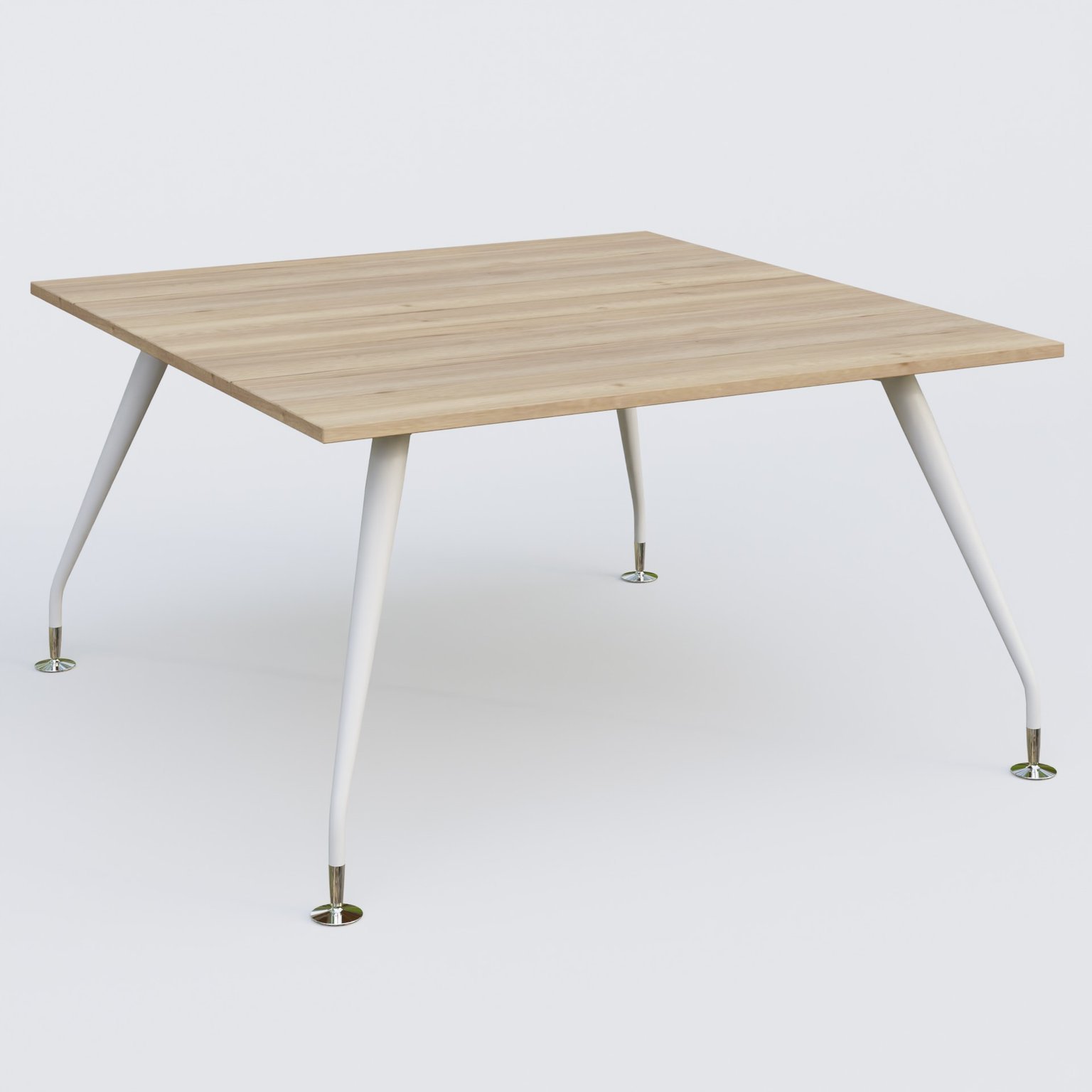 K5 plan droit 140*145 cm. Plateau Chêne naturel et pietement Blanc avec base chromé.