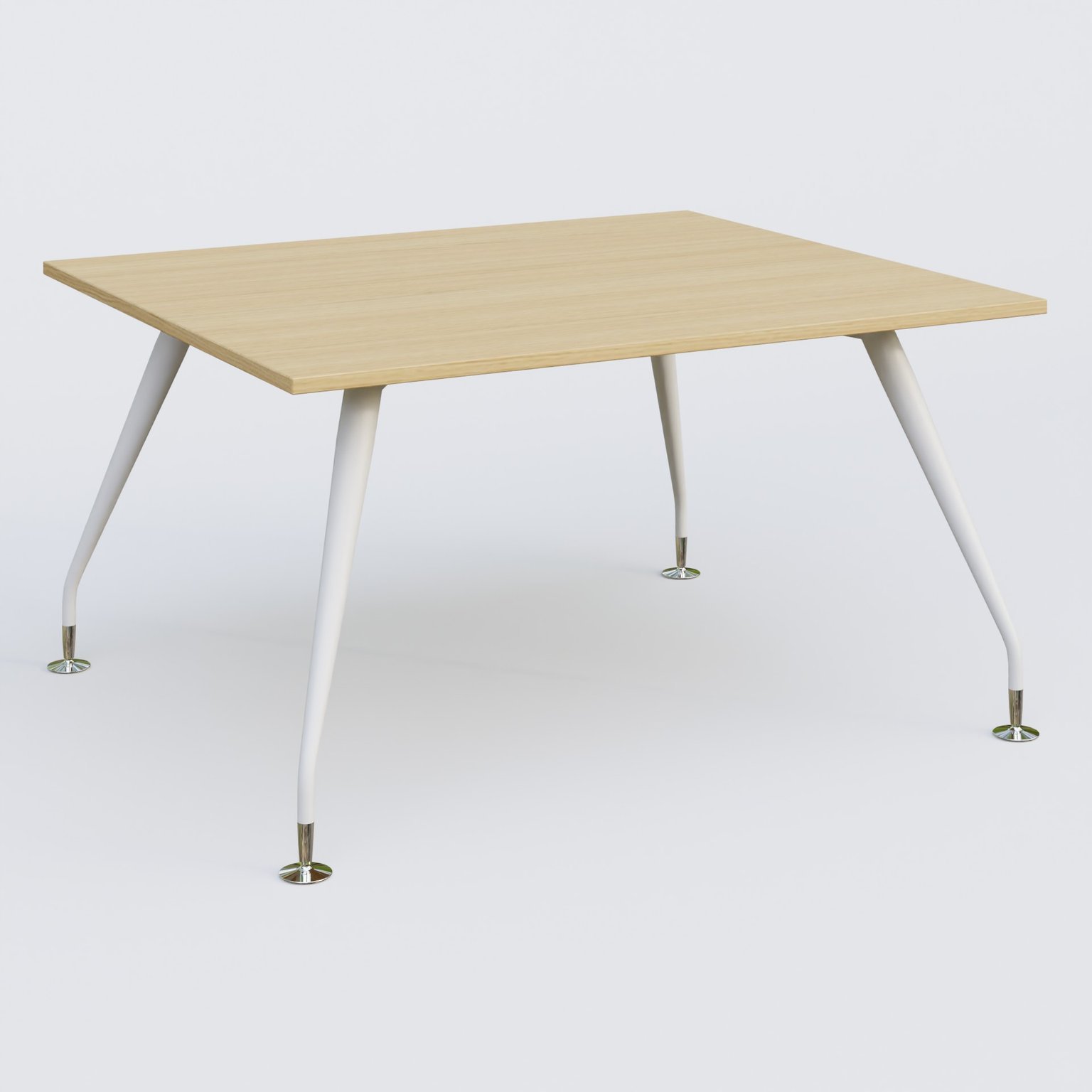 K5 plan droit 140*120 cm. Plateau Chêne clair et pietement Blanc avec base chromé.