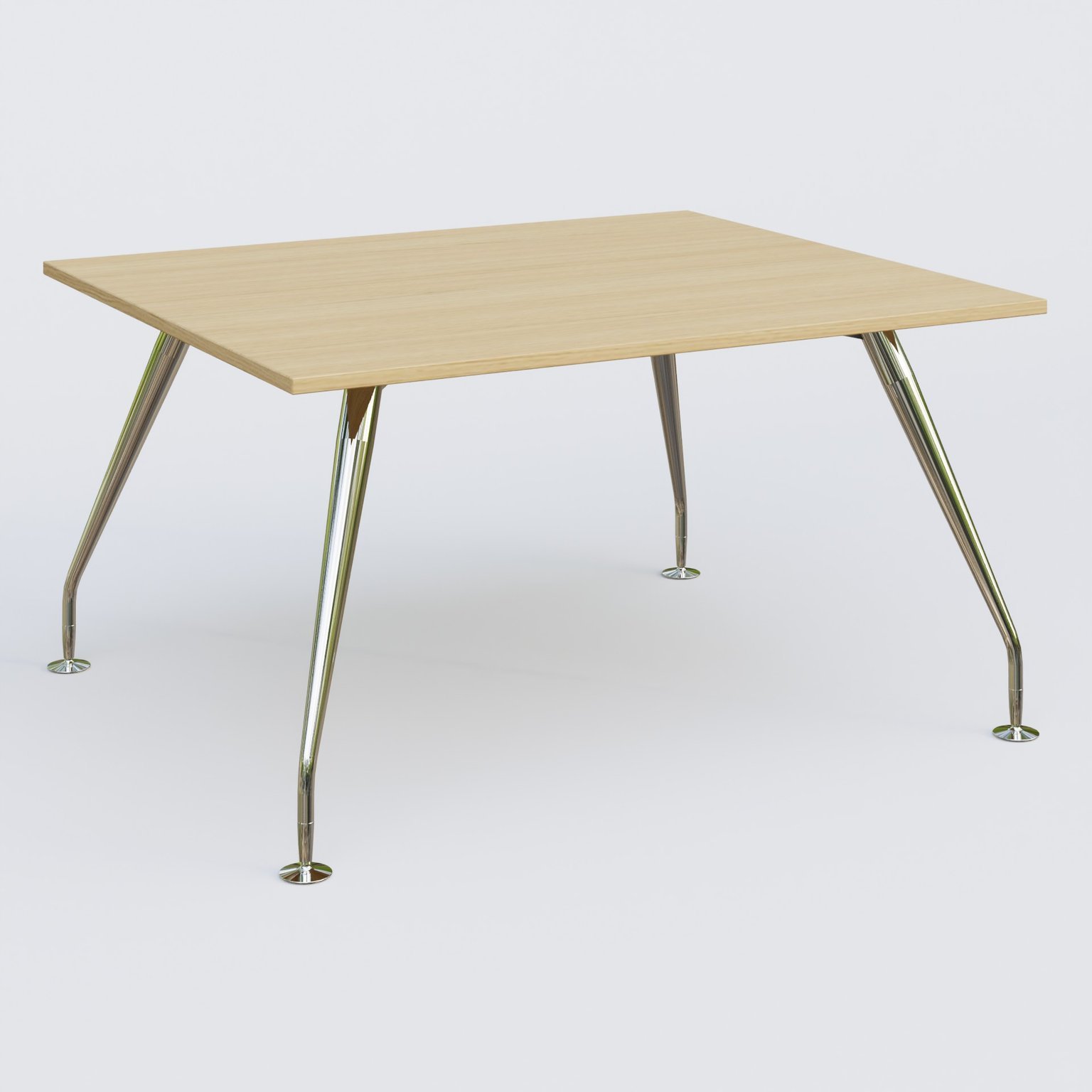K5 plan droit 140*120 cm. Plateau Chêne clair et pietement Chrome avec base chromé.