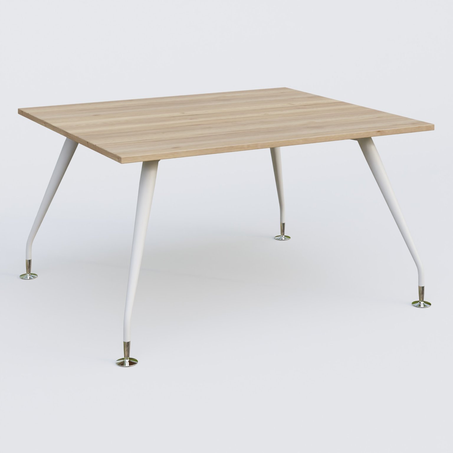K5 plan droit 140*120 cm. Plateau Chêne naturel et pietement Blanc avec base chromé.