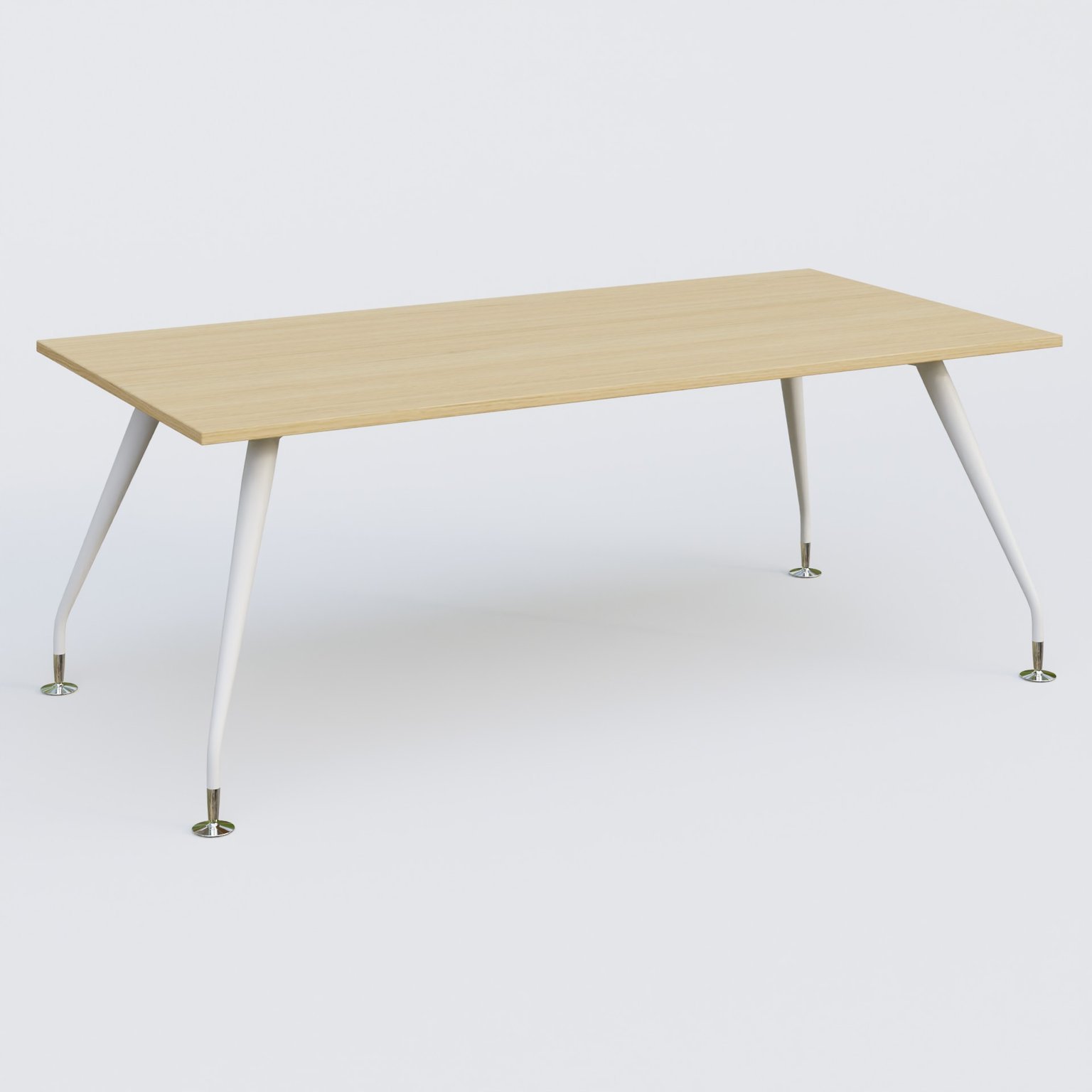 K5 plan droit 200*100 cm. Plateau Chêne clair et pietement Blanc avec base chromé.