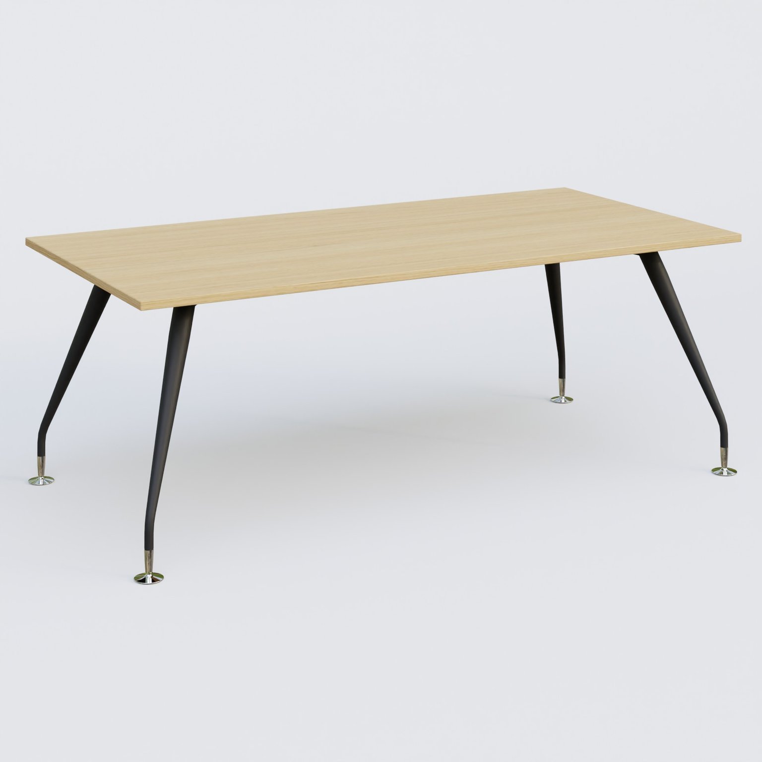 K5 plan droit 200*100 cm. Plateau Chêne clair et pietement Noir Mat avec base chromé.