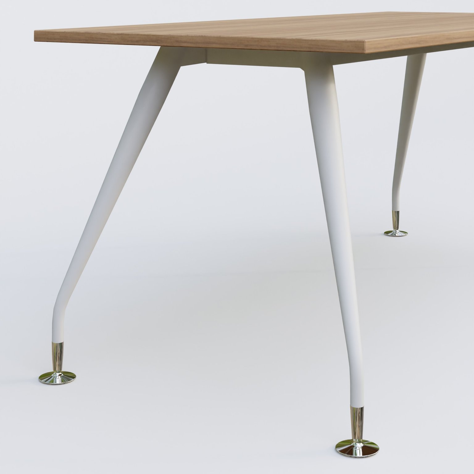 K5 plan droit 200*100 cm. Plateau Noyer et pietement Blanc avec base chromé.