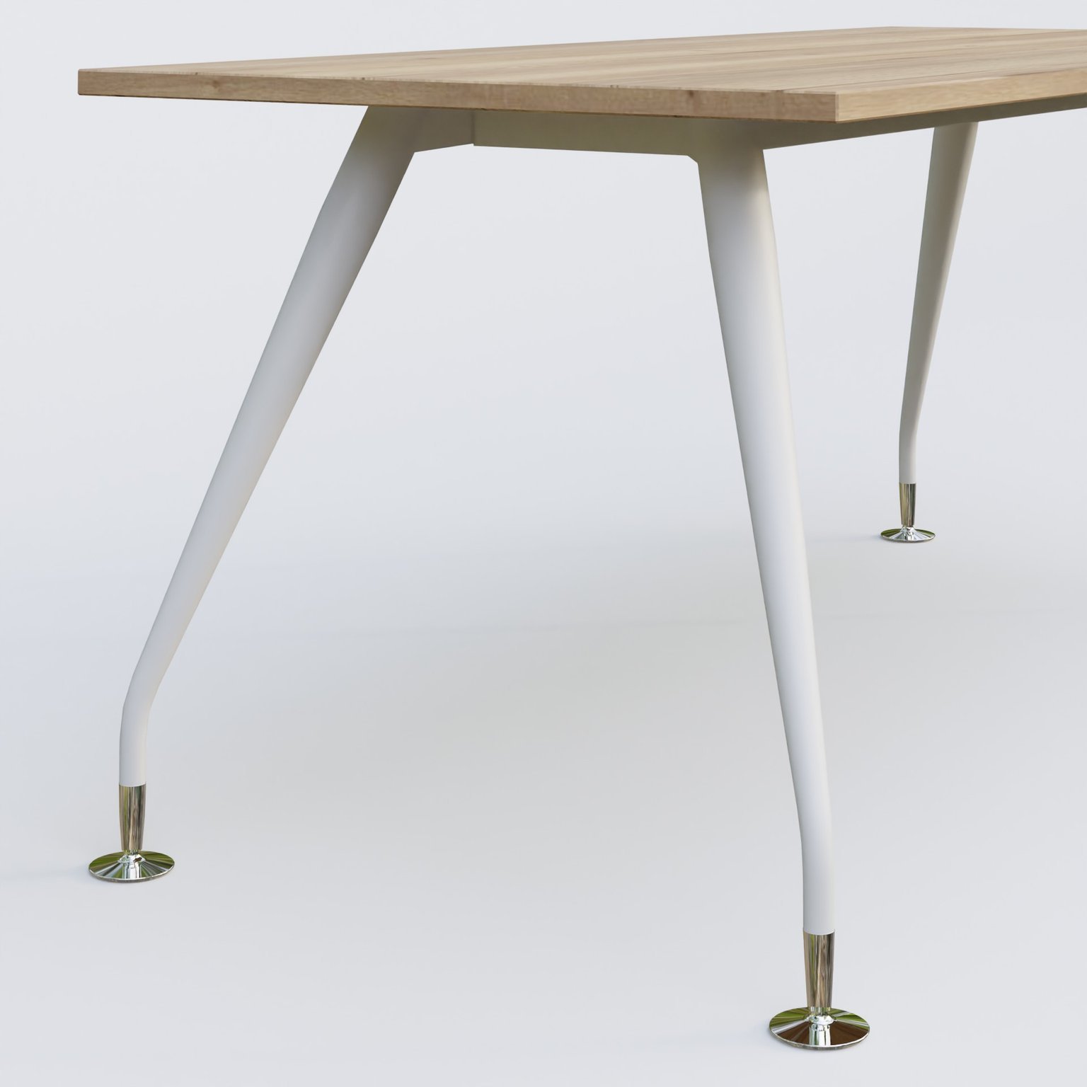 K5 plan droit 80*80 cm. Plateau Chêne naturel et pietement Blanc avec base chromé.