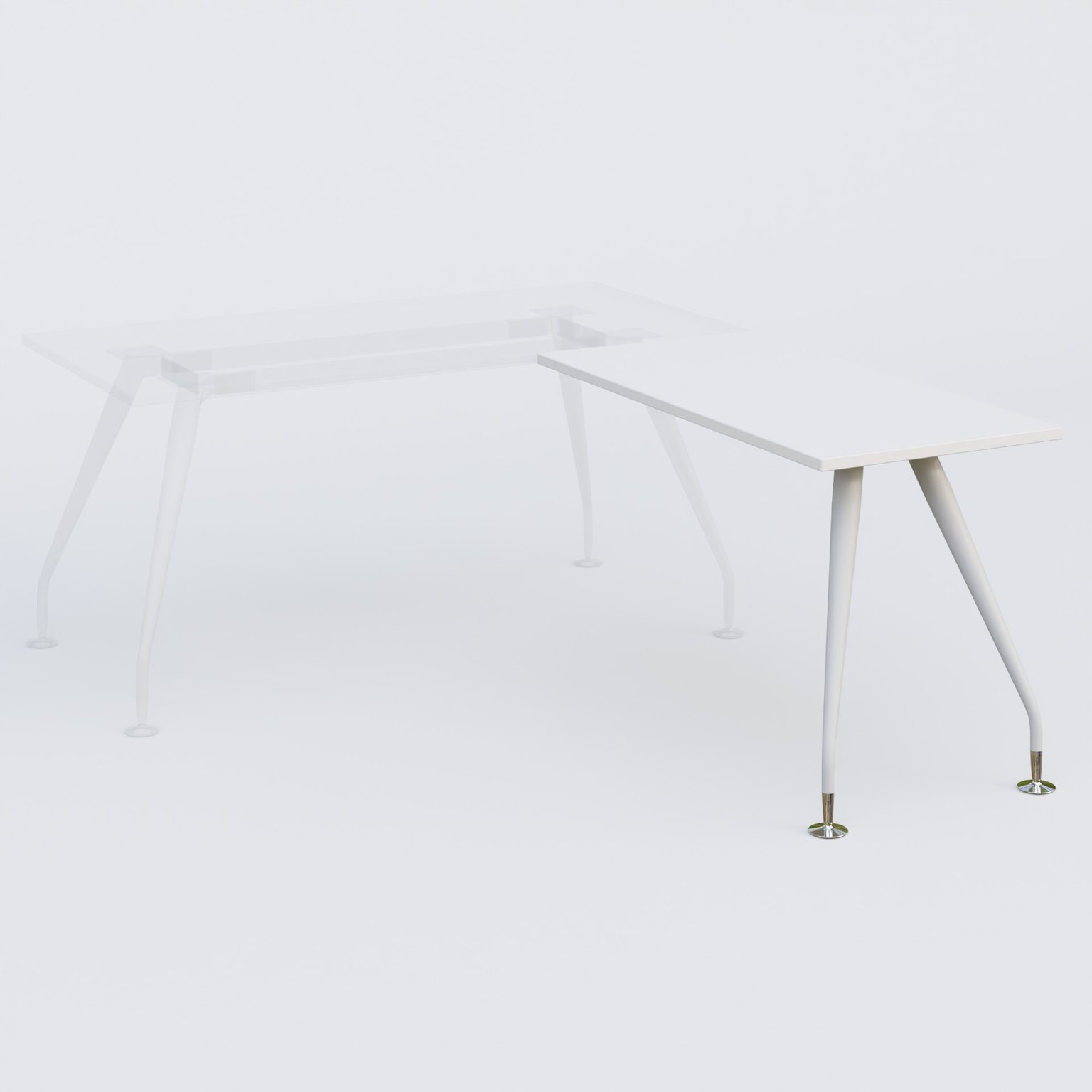 K5 retour sur pied 120*60 cm. Plateau Blanc et pietement Blanc avec base chromé.