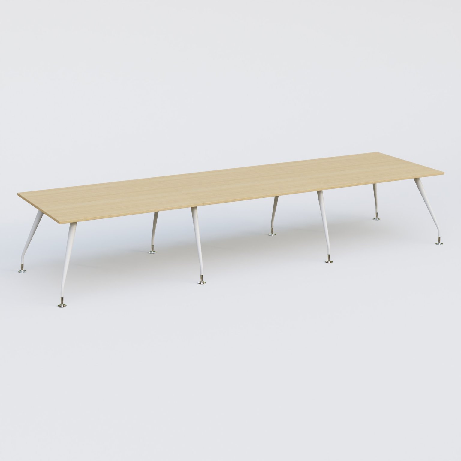 K5 table bench 420*120 cm. Plateau Chêne clair et pietement Blanc avec base chromé.