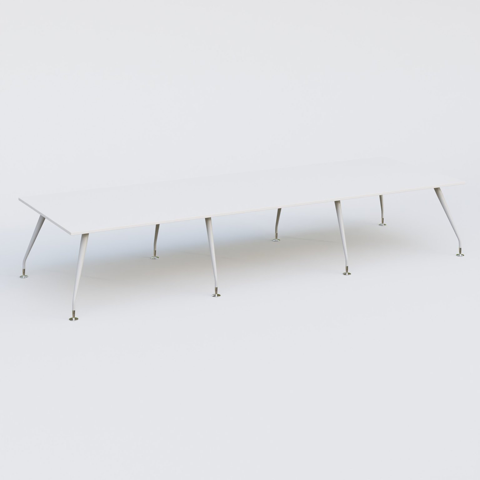 K5 table de reunion 420*145 cm. Plateau Blanc et pietement Blanc avec base chromé.