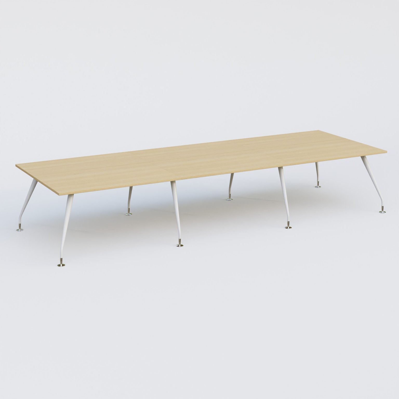 K5 table de reunion 420*145 cm. Plateau Chêne clair et pietement Blanc avec base chromé.