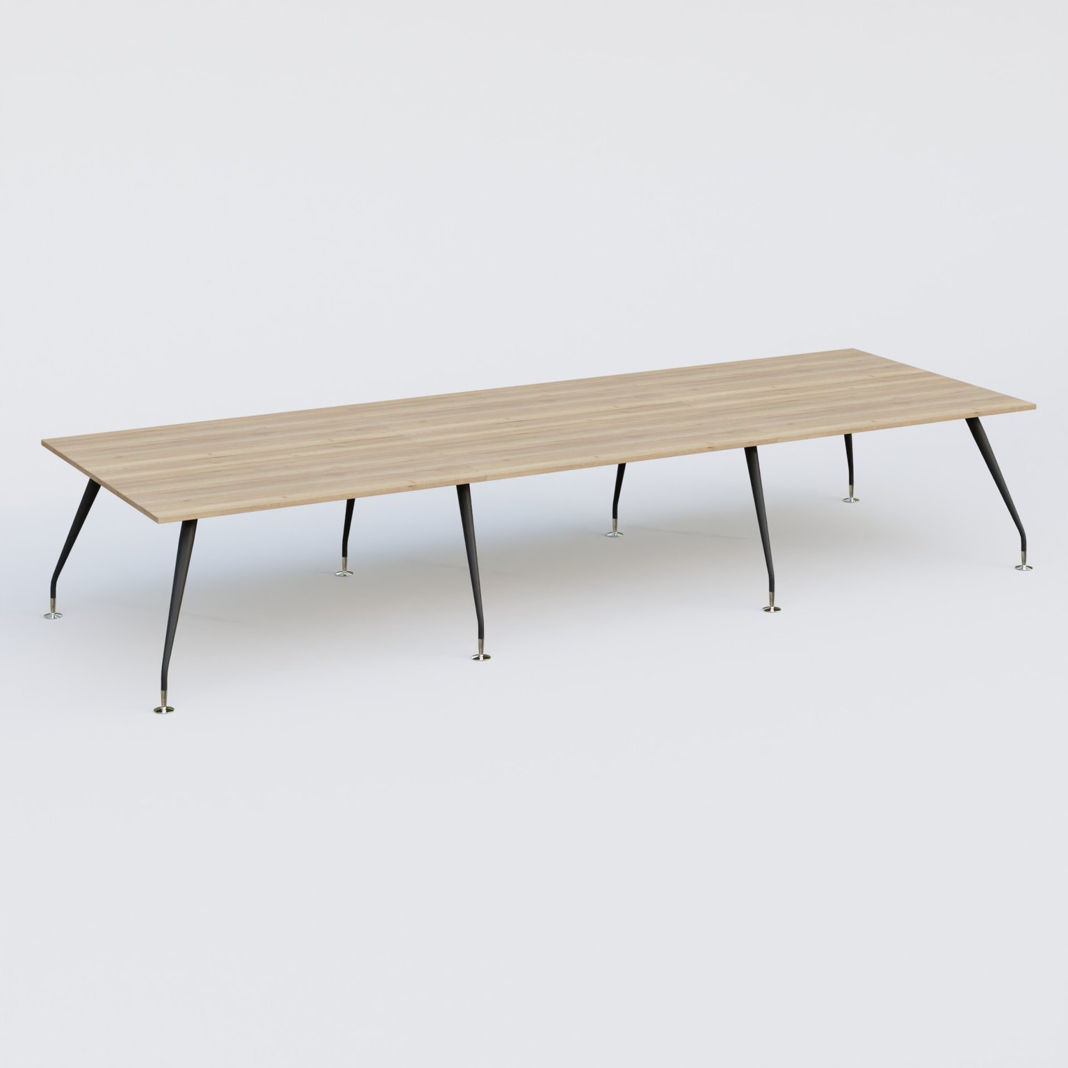K5 table de reunion 420*145 cm. Plateau Chêne naturel et pietement Noir Mat avec base chromé.