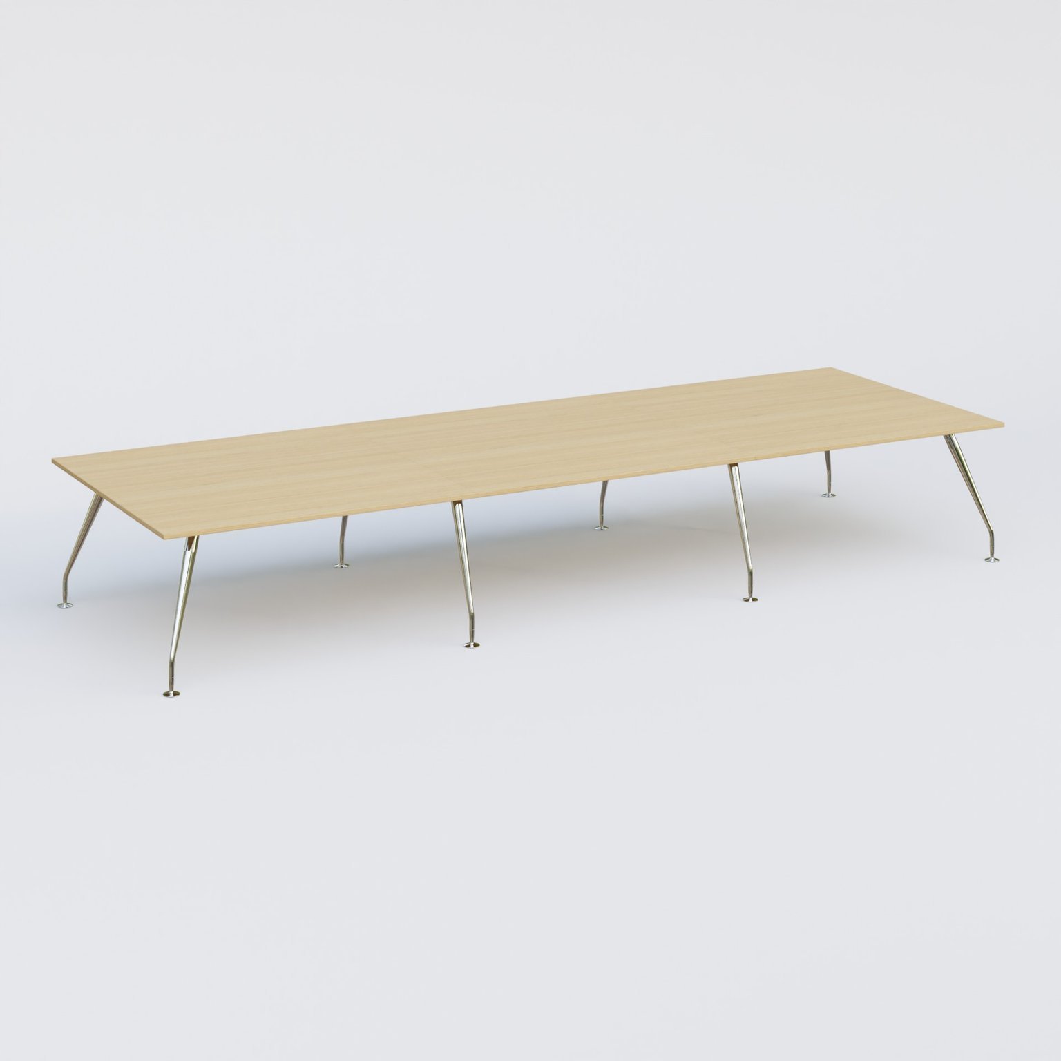 K5 table de reunion 480*165 cm. Plateau Chêne clair et pietement Chrome avec base chromé.