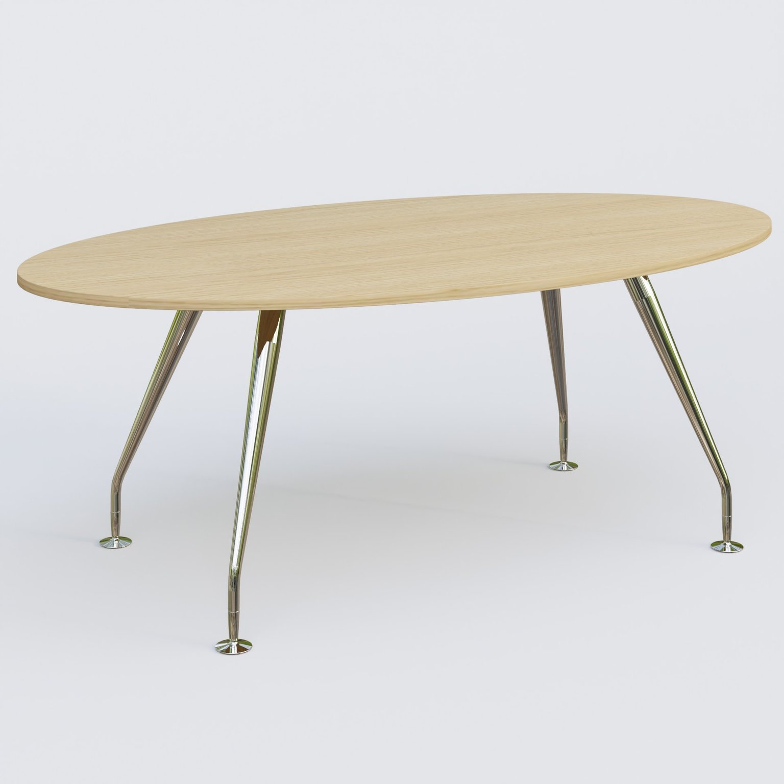 K5 table ovale 200*110 cm. Plateau Chêne clair et pietement Chrome avec base chromé.