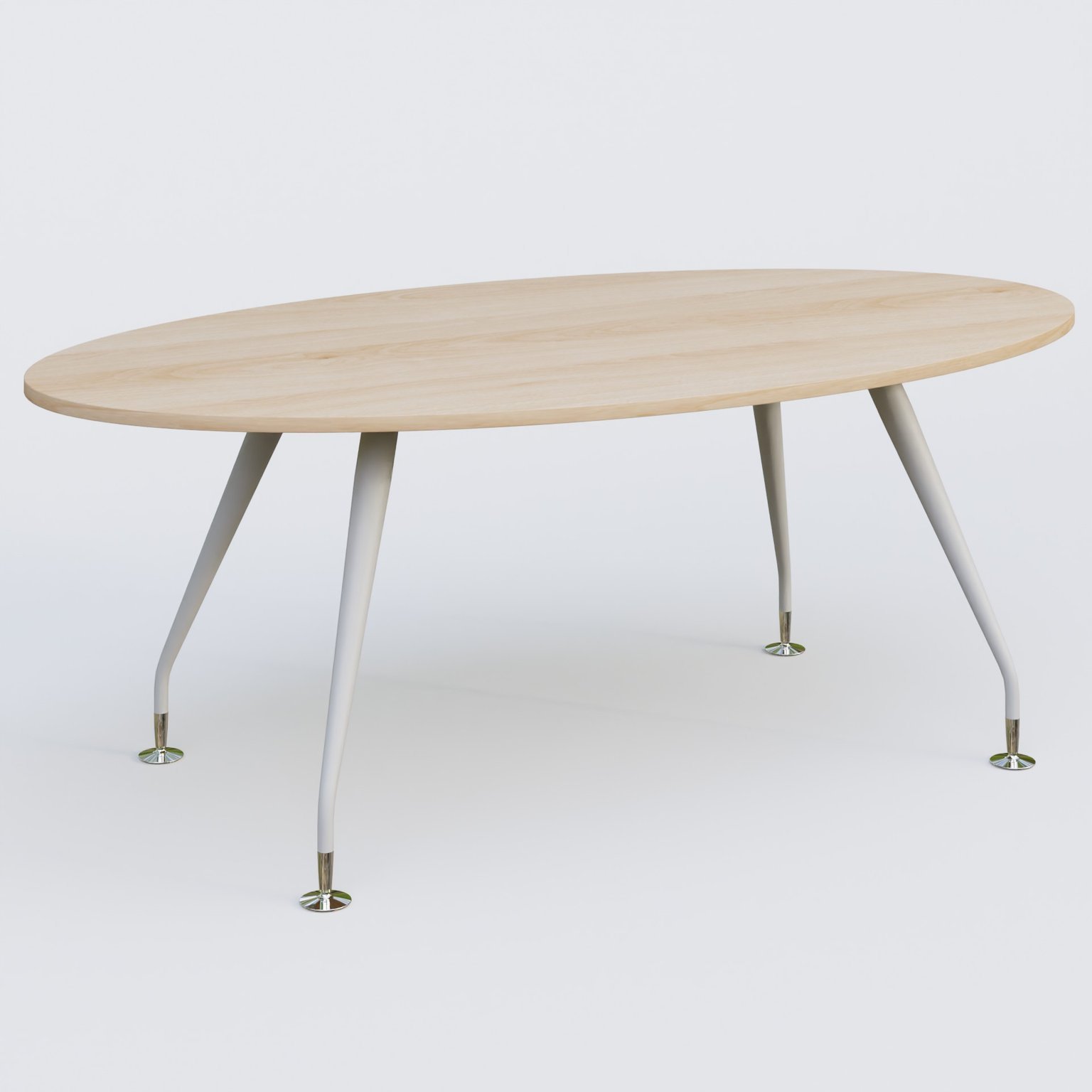 K5 table ovale 200*110 cm. Plateau Hêtre et pietement Blanc avec base chromé.