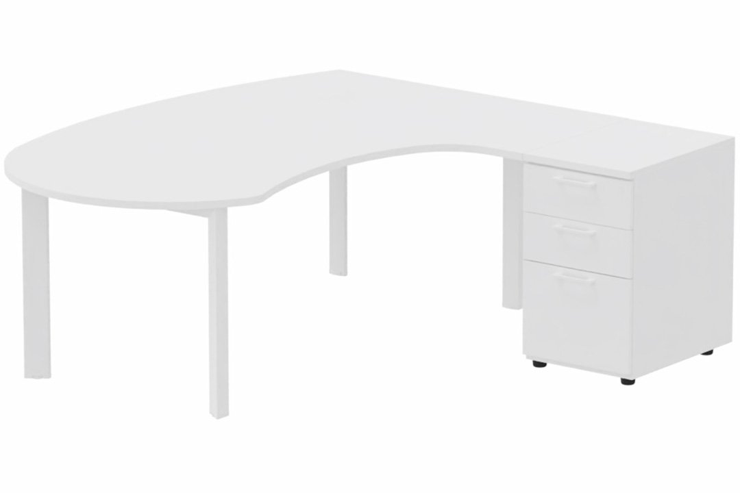 K7 compact 90° manager 190x141x104x60cm sur caisson HB mélamine 3 tiroirs, plateau blanc, structure blanc
