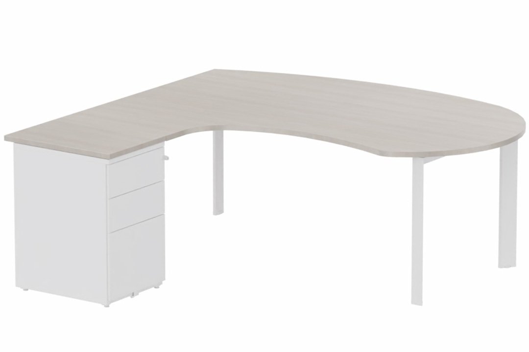 K7 compact 90° manager 190x141x104x60cm sur caisson HB métal 3 tiroirs, plateau acacia, structure blanc