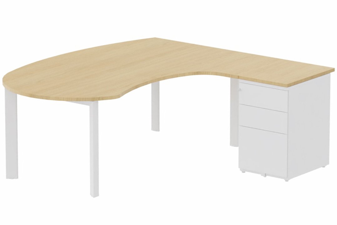 K7- Plan compact 90° asymétrique Manager 190x183x104x60cm avec caisson HB métal 3 tiroirs - retour à droite