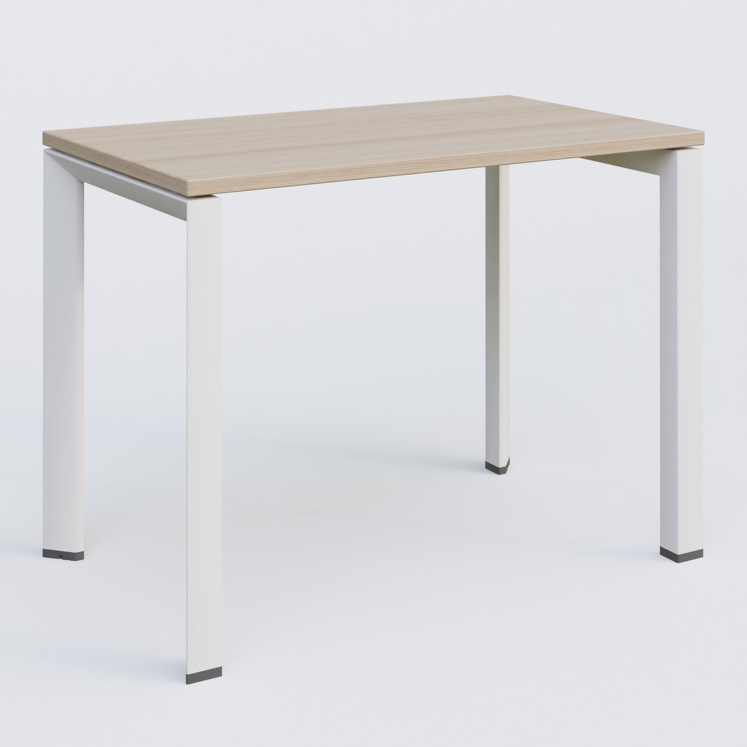 K7 plan droit 100*60 sur pieds fixe. Plateau Acacia et pietement Blanc
