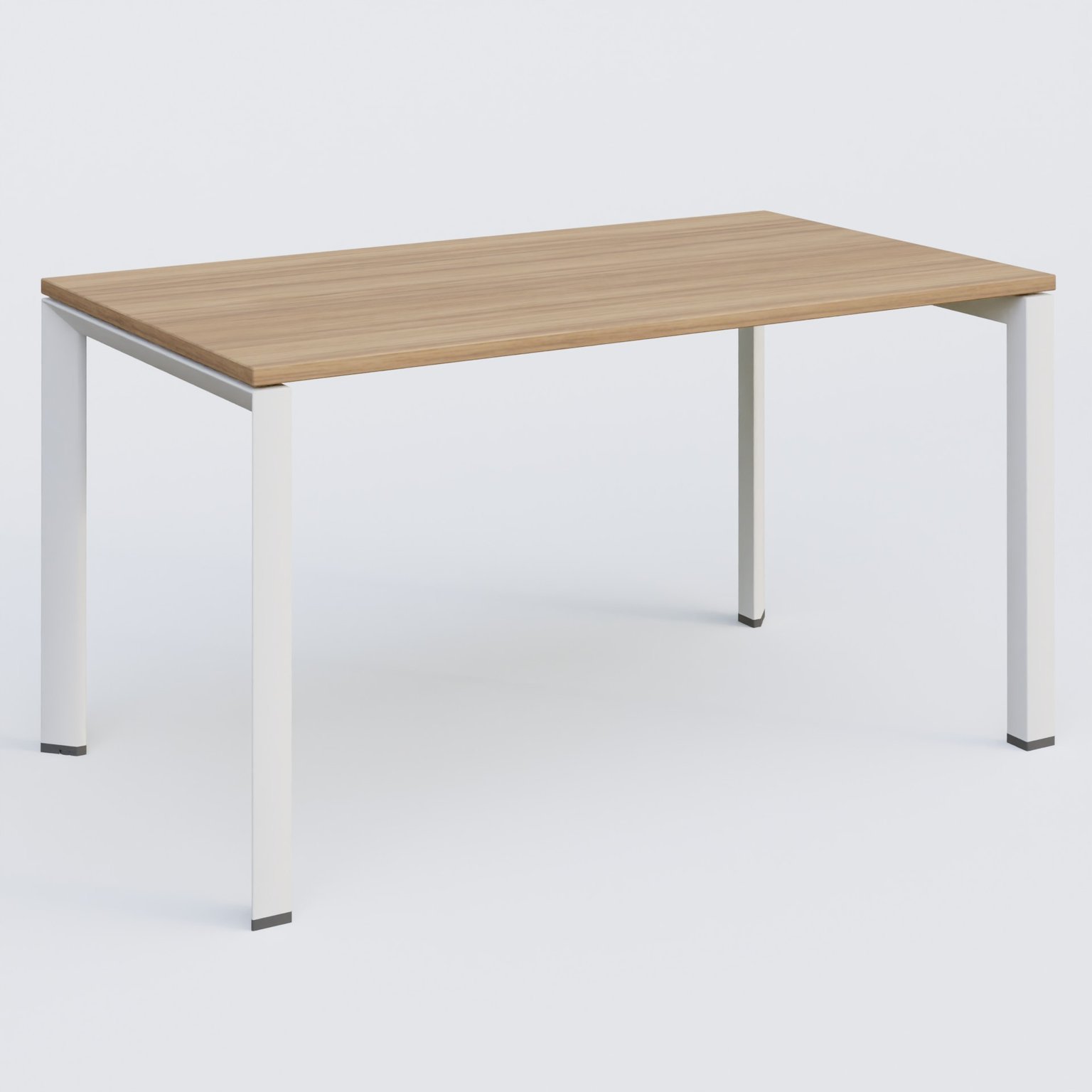 K7 plan droit 140*80 sur pieds fixe. Plateau Noyer et pietement Blanc