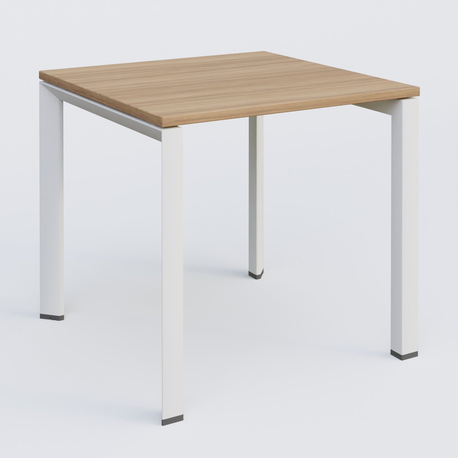 K7 plan droit 80*80 sur pieds fixe. Plateau Noyer et pietement Blanc