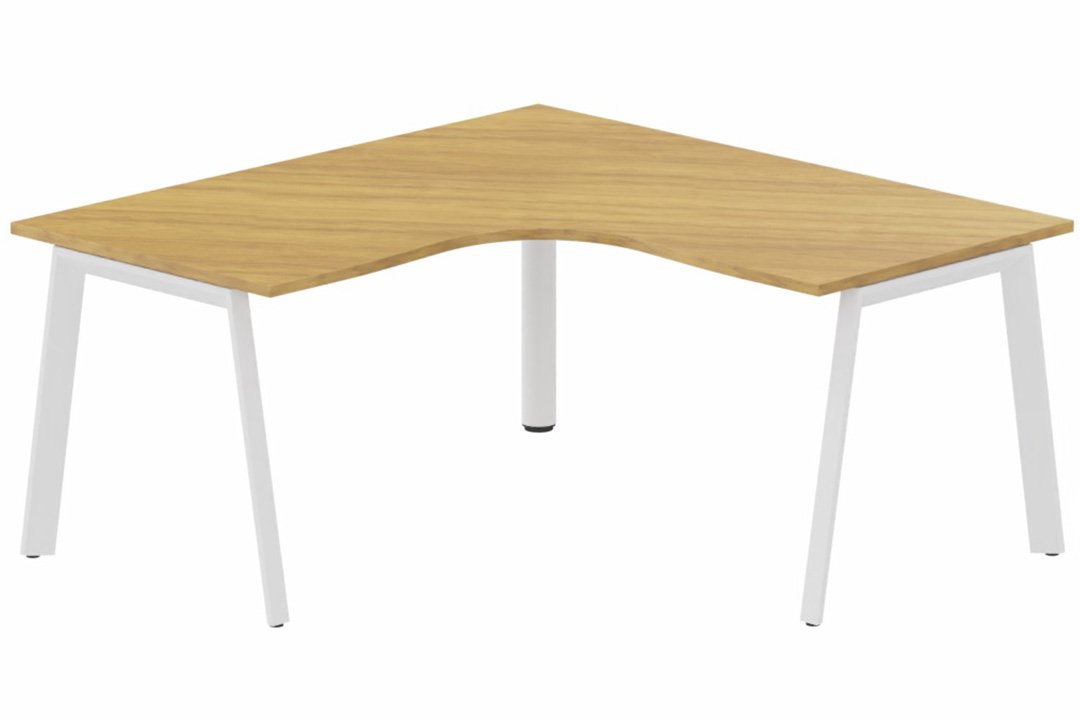 K8 Compact 90° symétrique 160x160/80cm structure pied d'angle, plateau noyer, structure blanc