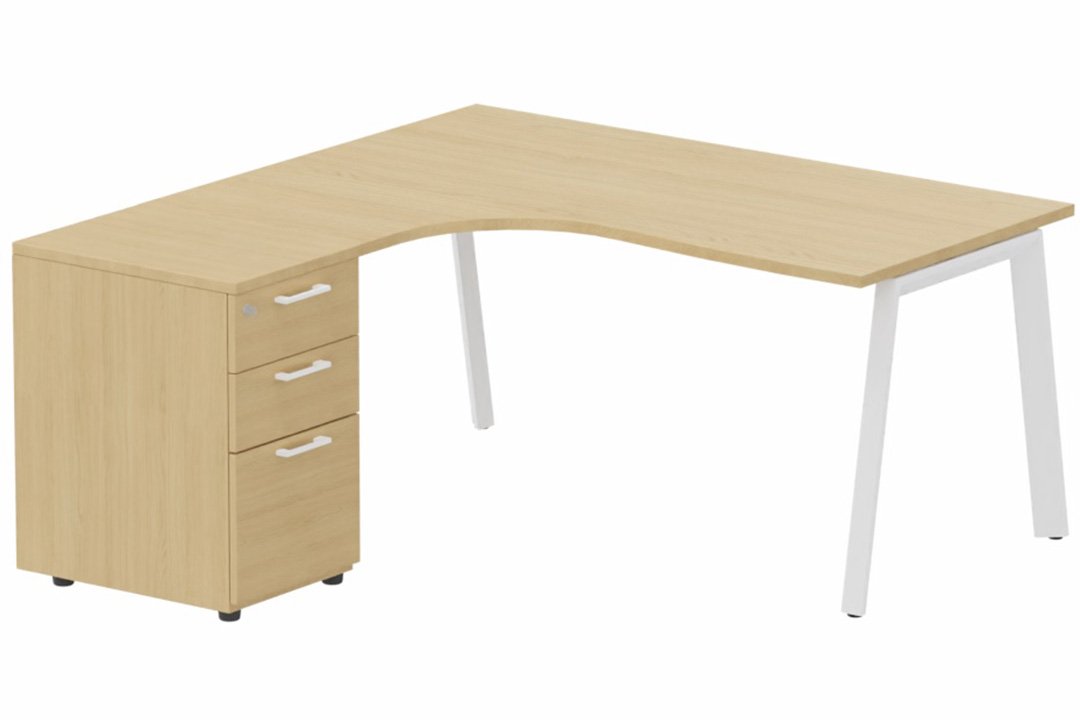 K8 Plan compact 90° asymétrique 180x162x80/ 60cm avec caisson HB bois 3 tiroirs - retour à gauche