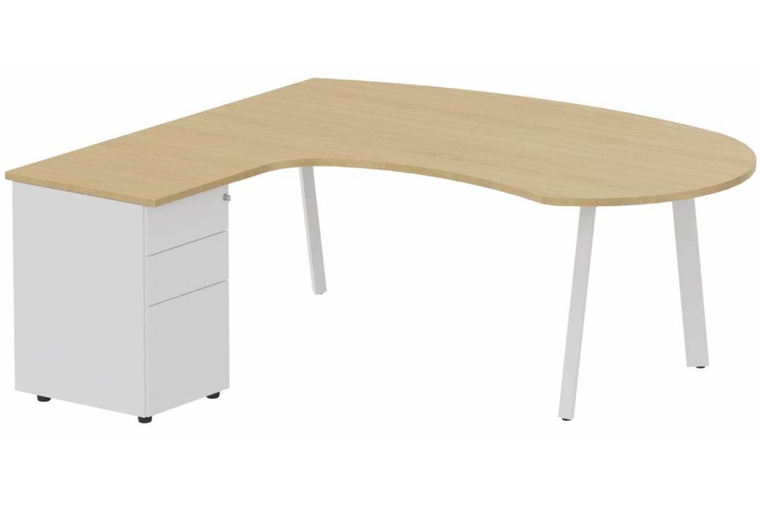 K8 Plan compact 90° asymétrique Manager 190x183x104x60cm avec caisson HB métal 3 tiroirs - retour à gauche