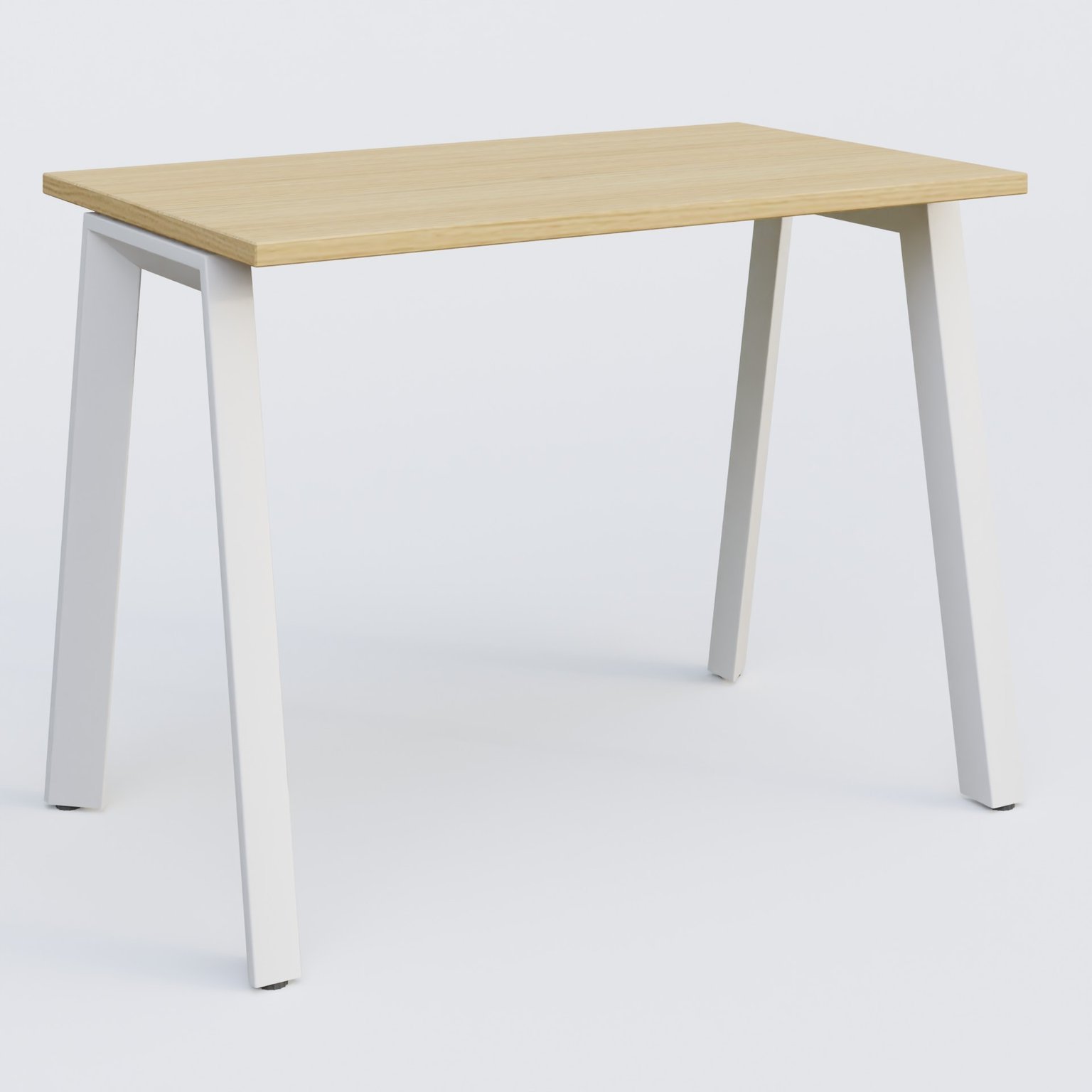 K8 plan droit 100*60 sur pieds fixe. Plateau Chêne clair et pietement Blanc