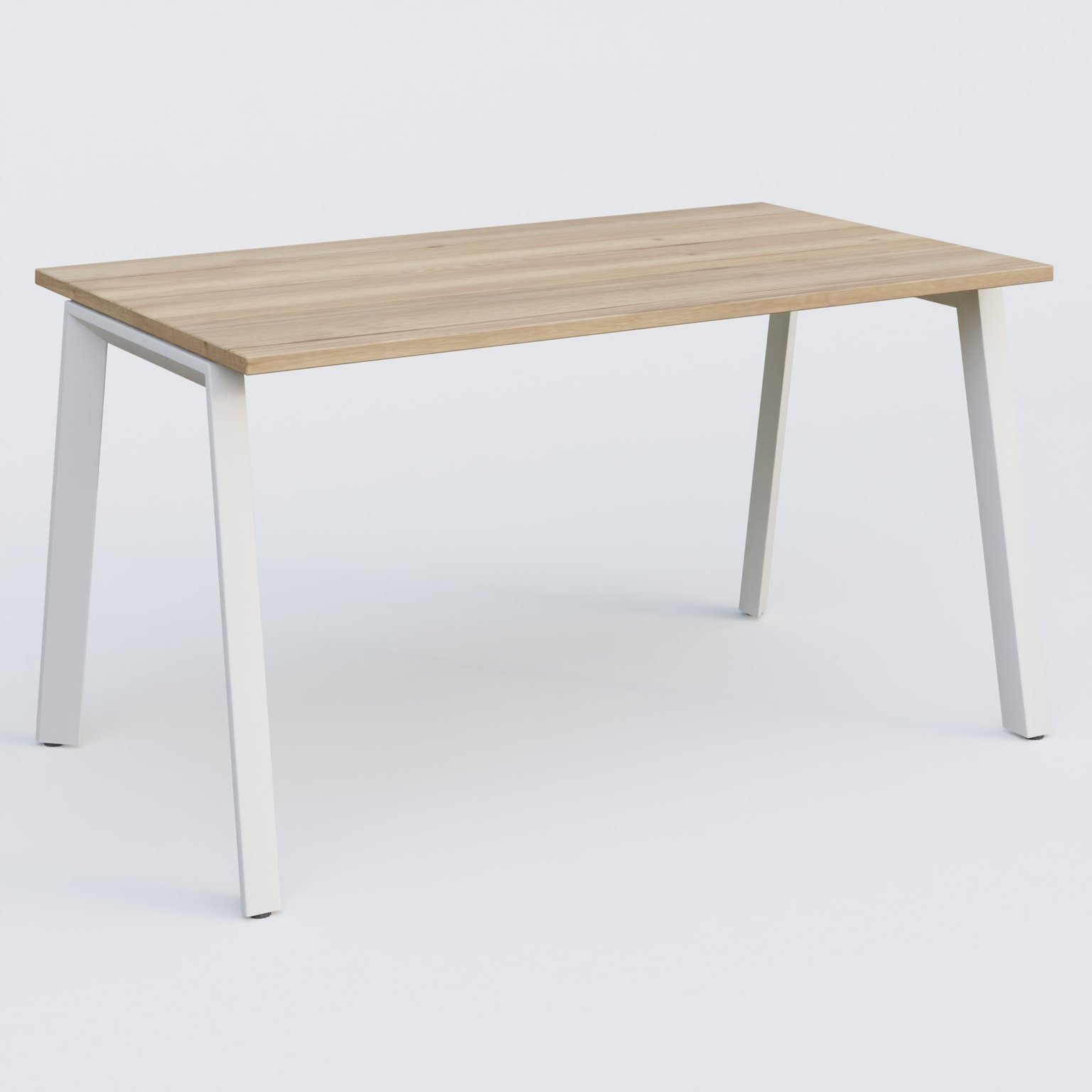 K8 plan droit 140*80 sur pieds fixe. Plateau Chêne naturel et pietement Blanc